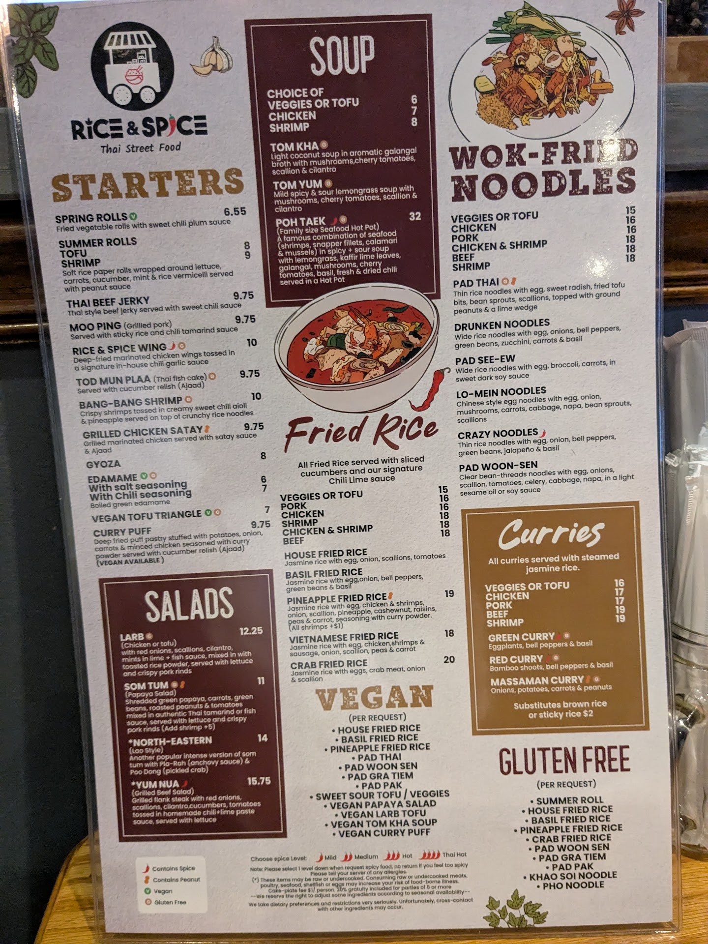 If you're concerned about spice levels, no worries: you can choose from mild, medium, hot, and Thai hot, but be aware that mild is very not spicy, while medium has a kick that builds, and hot means hot! :)