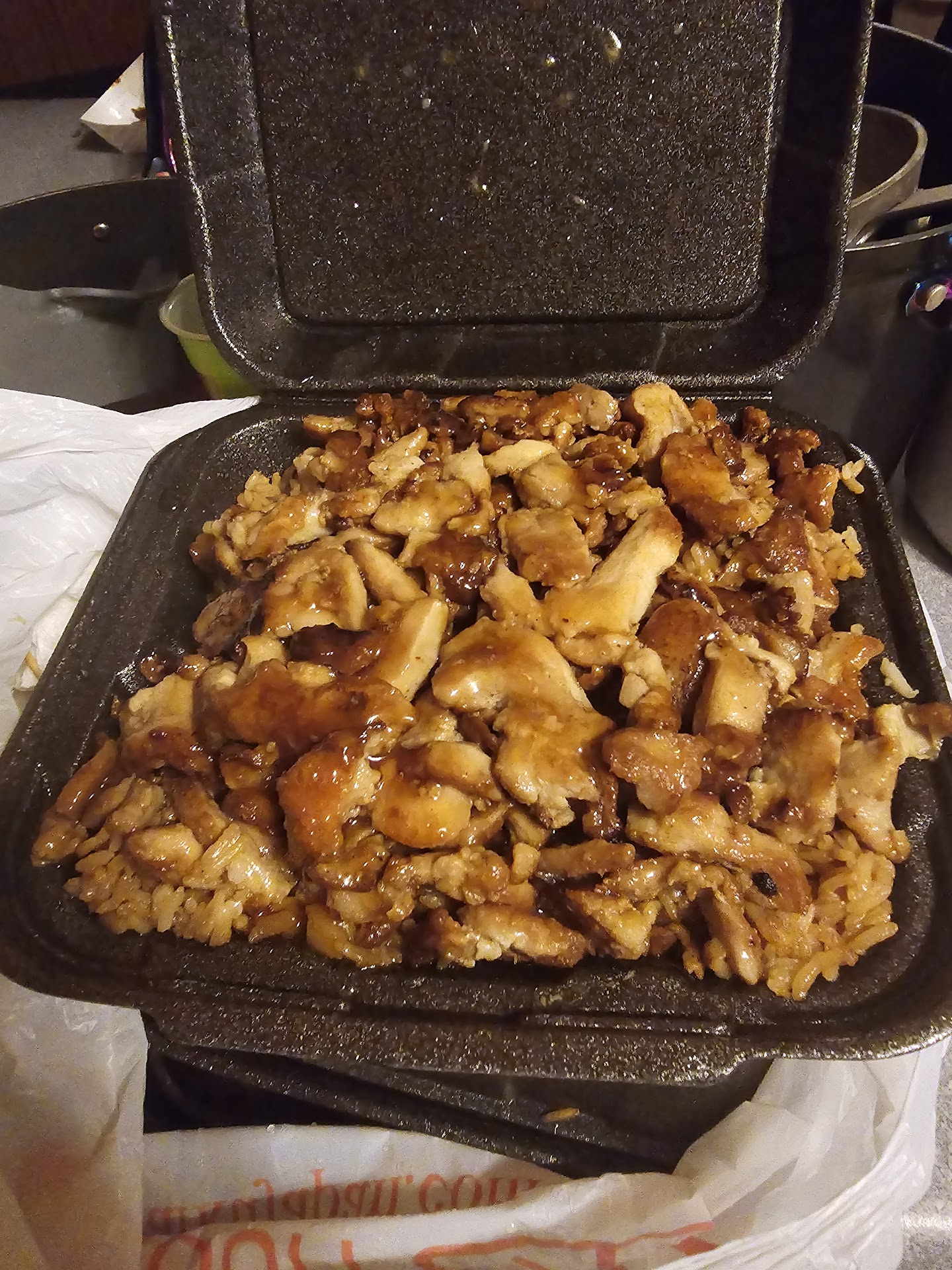 The quality of the food was excellent, as usual. The temperature of the food remained warm even after the hour-long drive home. The service provided by the staff was exceptional. Despite an accidental drop of one of our plates, they promptly replaced it without any additional charge. Furthermore, all of our orders were accurately fulfilled and generously portioned.