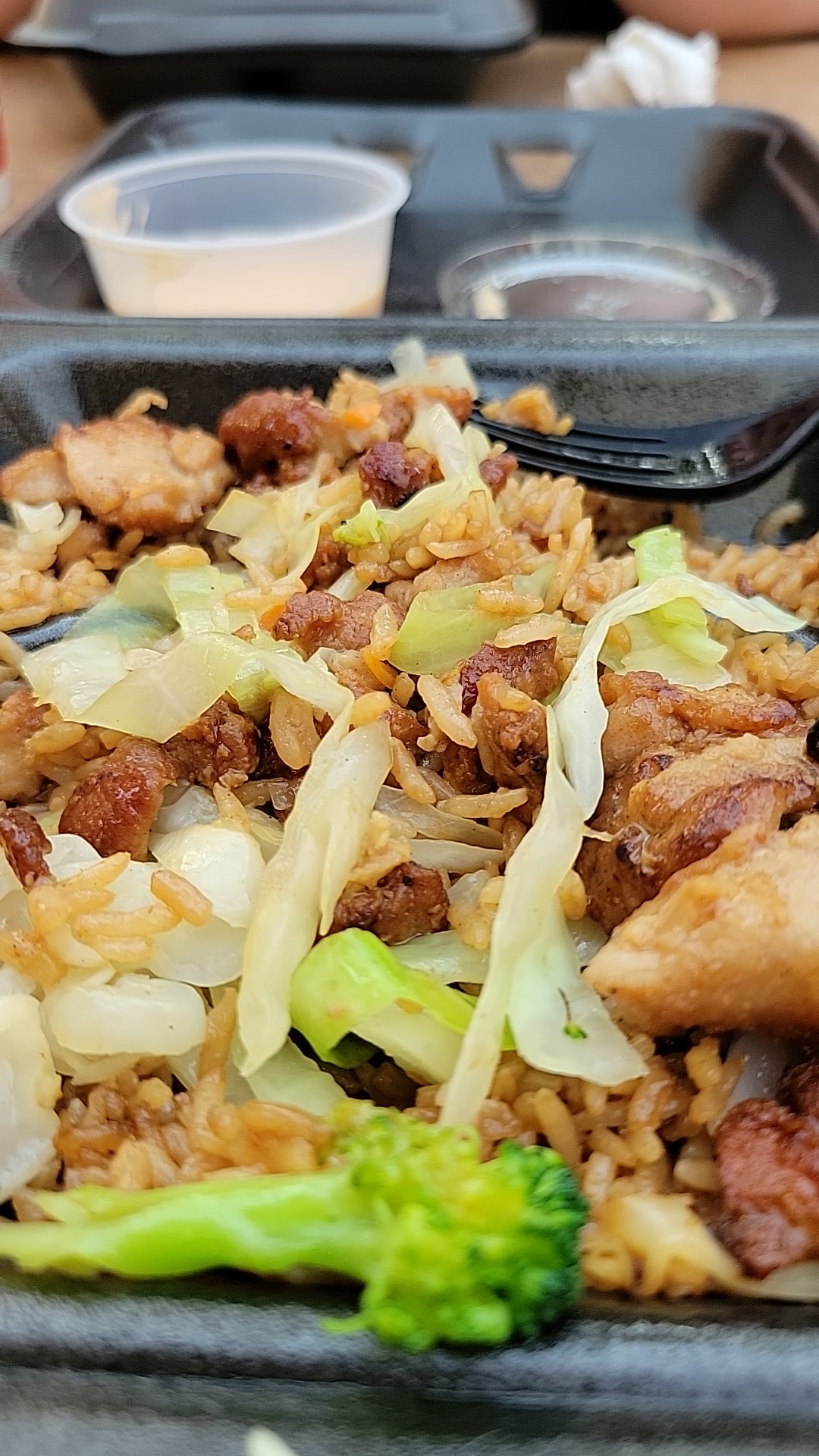 Read moreMy girlfriends been ranting and raving to me about how this is the best place, a memory from her childhood. I've questioned whether it's just like any ol Asian mall food you get, not that excited to try. I was amazed. They don't have to do too much. They just do it right. When I walked up there was a little line, and they were training a young lady, probably about my age tbh. But they kept the food cranking out. They didn't have to do all that extra flowery stuff that you find at boogie food courts. I got a giant platter of good fried rice, a solid amount of veggies done the right way, and topped with some delicious chicken. My gf asked for extra sauce, and they happily obliged. I hope they never leave. I hope to...