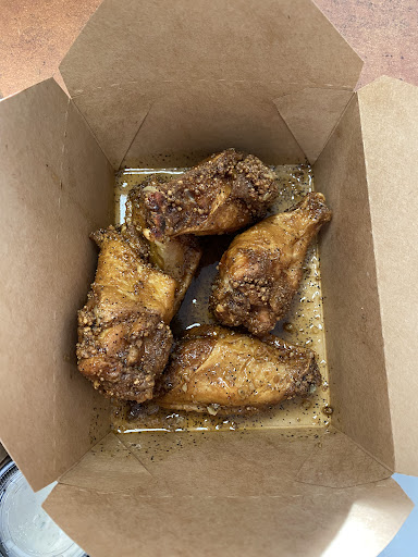 Read moreOk don't judge me but I kept seeing this place dropping in at the Her365Fitness gym next door and decided to drop in close to closing after a class. đ€Ł Because it was close to closing no waiting, took my order right away. Knew they cooked the wings to ordered so waited 10-15 min after ordering. I ordered the lemon pepper and garlic parmesean 10 pieces. My choice of dipping sauce was ranch, honey mustard and one other not to my interest maybe it was BBQ. I didn't hear blue cheese as an option which is my favorite for dipping my wing, no problem I'll use the Chick-fil-a sauce when I get home. There are few spot in my area, Wing Stop and Fire Wings, this place beats them all. I would have like them cooked a little longer, but I love chicken with good ratio of extra skin left on them to remind me why I loved pork skins back in the day when I wasn't on my healthier choices kick. đ...