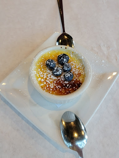 Quirky restaurant with very friendly staff and good food. The potstickers were great as was the crispy calamari that came with 5 sauces. The New York steak had great flavor and with the optional au gratin potatoes was very nice. The prime rib was tender and the horseradish sauce potent. Little more crust would have been better but it was still very tasty. The crem brulee was done right with a nice crisp sugar top. This restaurant is a converted house with limited seating and hours. That also have a somewhat limited menu but what they do have they do well. One person who could have been the owner or chef or both was very friendly singing happy birthday to a large group behind us and was very personable. A very family feeling...