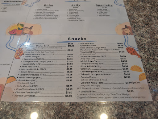 Read moreWe came here to get some snacks on the way home. The staff is always friendly and the place is always clean. We ordered through Door dash for pick up while we were out and on the way home. We ordered two Popcorn chicken, Jalapeno poppers and Vegetable Samosa's. Drink's we got Blueberry slushy, Pina Colada Smoothie and Thai milk tea with coffee jelly (cold) The Popcorn chicken is so bomb! 💣 We always order the popcorn chicken. Jalapeno Popper's we're yummy and the Vegetable Samosa's we're good. Samosa's just a little spicy for the kiddo. Would be good if some kind of chutney came...