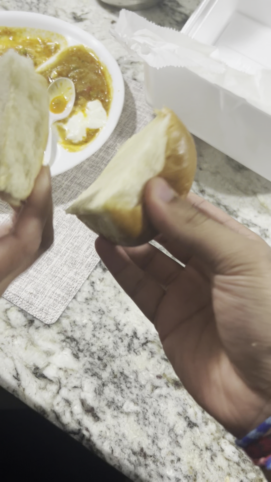 Firstly, the food. Like I said, the papdi chaat tasted fine but there were only 7 pieces (probably the worst value for money you can get in a 25 mile radius). Everything else tasted terrible and was COLD! The pav was cold and stiff and the bhaji was drowning in oil and very spicy (we are very tolerant of spice and did not order spicy). It also had a weird aftertaste. The paneer tikka was probably the driest I’ve ever had and the flavor was very bland. It just got worse from here as the frankie’s were $12 each and the size of a roti roll. As you can see from the images, it is paper thin. And it gets better. After already eating 2 of them, we found out there were very very tiny pieces of foil in the cheese! We use Amul cheese at home so we know how the foil looks and if you look closely, you can see it in the pictures. If the cooks are wearing gloves, why can’t they use their gloves to hold it and remove the foil to shred? Perhaps they do not wear gloves.