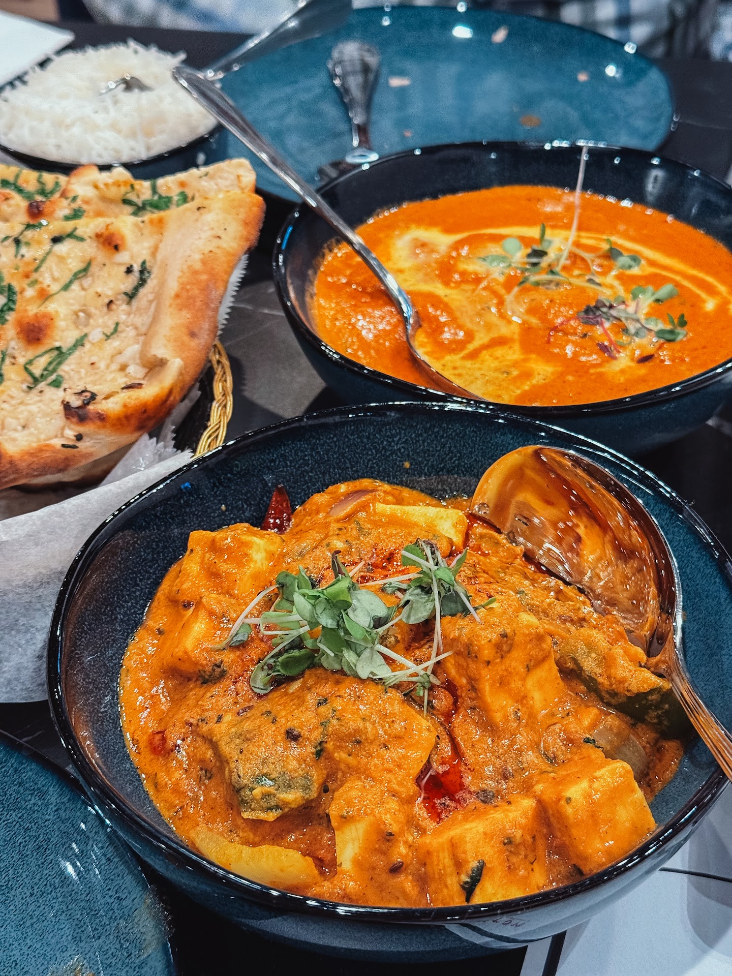 Paneer butter masala and Achari Bhindi was perfectly spiced, and the Sweet Lassi was a refreshing treat. A must-visit for anyone looking for authentic North Indian cuisine. The staff at Saffron were attentive and courteous. The restaurantâs decor is inviting, making it a great spot for family dinners and celebrations. Their Dal makhni was outstanding; a true comfort food delight.Rice is served complimentary.