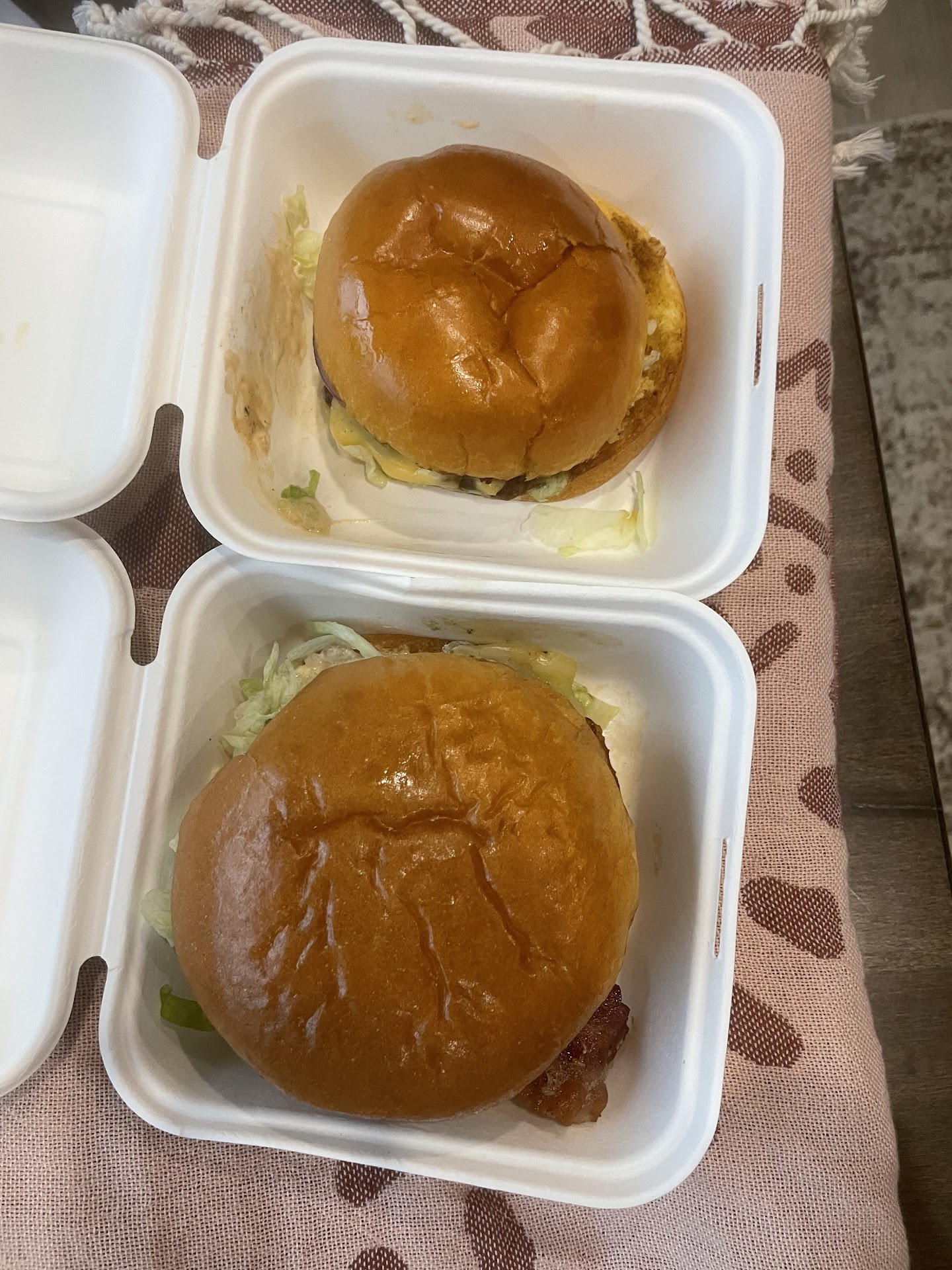My husband‘s burger looks fantastic, I’m disappointed in my order. The “double patty” is far less than advertised. Not much bigger than a golf ball. I would love to come back and have a better...