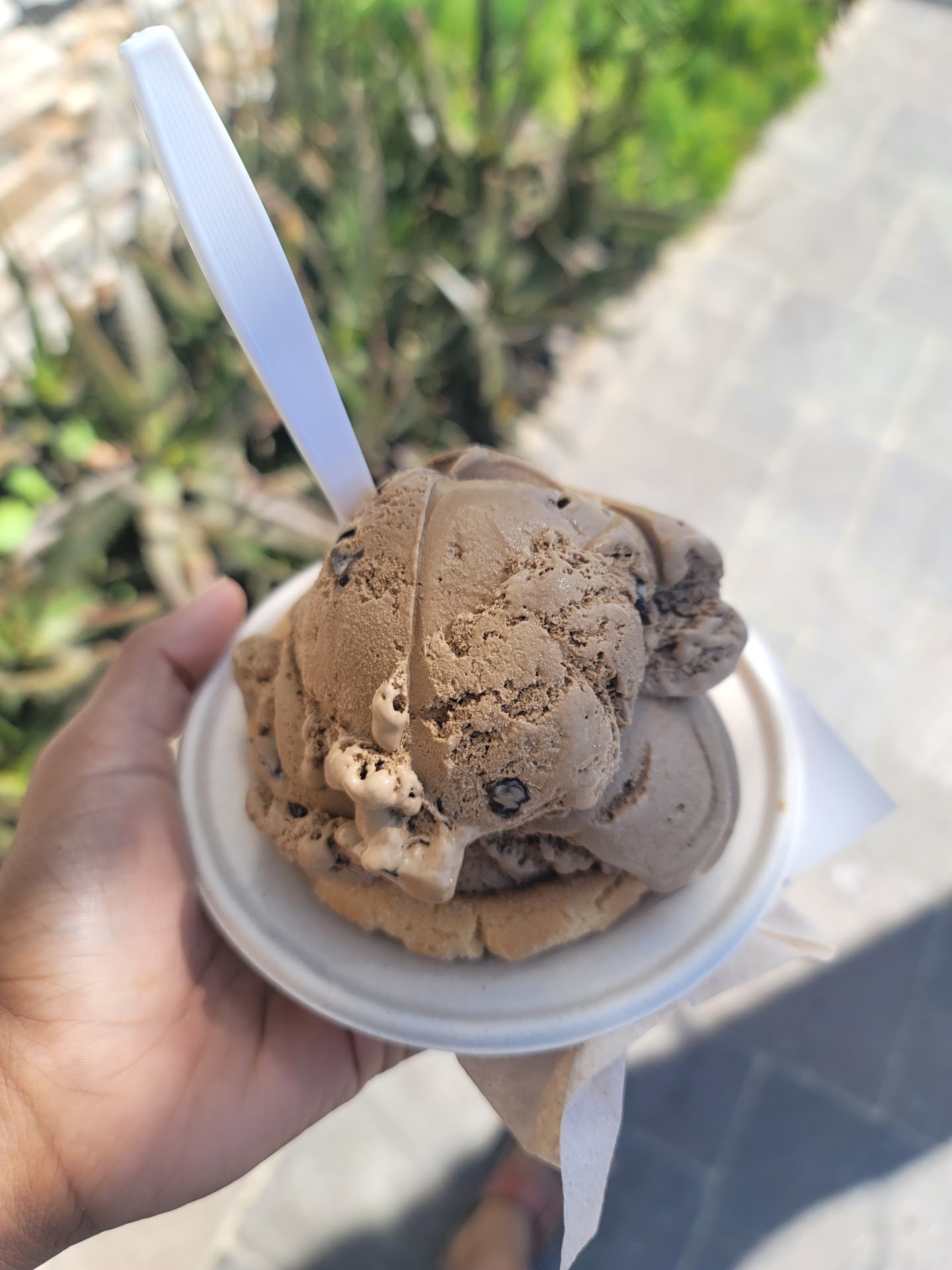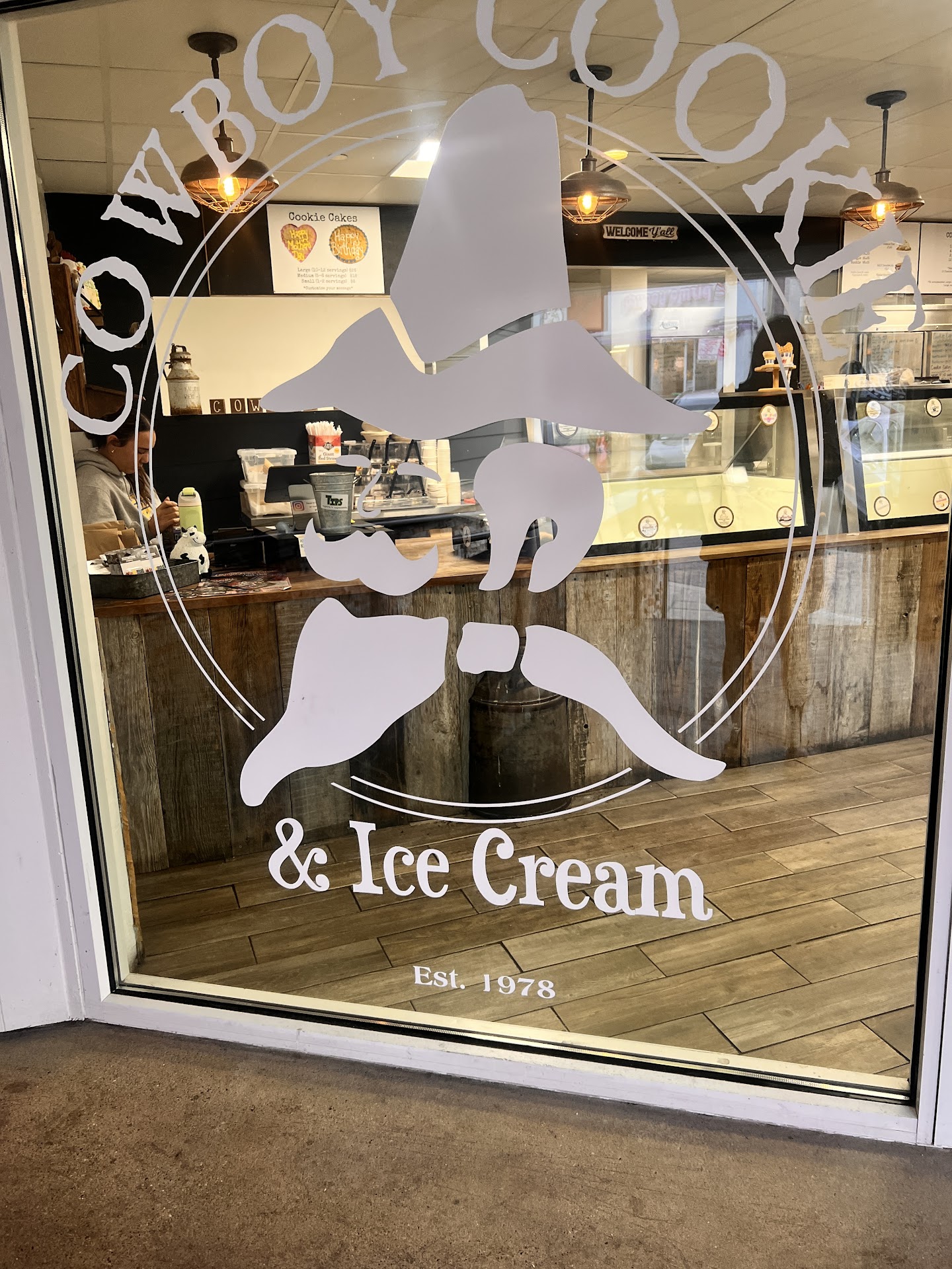 Read moreIce cream was basic, nothing special. But I'm writing for the cookies. Got 4 different flavors. The cowboy chocolate cookie smelled and tasted like soap. I thought it was me but even my husband made a comment that it tasted like dawn. We did enjoy the other flavors so we actually went back the next day for the flavors we did like. When we walked in, we realized the place smelled like soap! I'm assuming it must be the air freshener??? Not sure. Well, we got the chocolate chip cookie and it smelled exactly the same as the place. That soap smell! Soooo just suggesting to take out that air freshener or whatever it is that's seeping into the cookies. Not sure why you would even want to cover the smell of fresh baked cookies. Anyways, we did enjoy the cookies that didn't have that...
