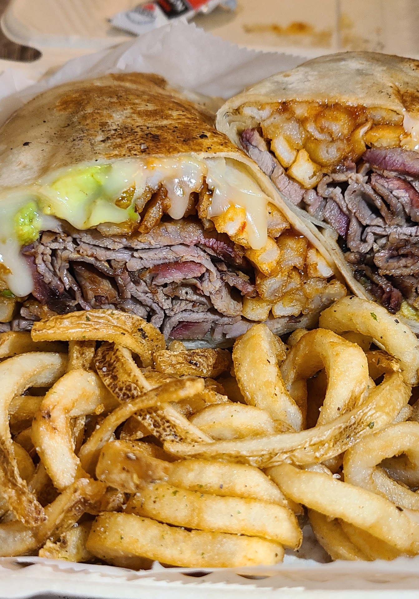 Read moreHere is my review of Hoagies. Pismo Wrap was alright. Here is the breakdown of what was inside wrap. 65% fries, 15%BBQ Sauce,10%Tri-Tip, 5% Cheese and 5% avocado(this is according to what I saw and tasted). They serve the wrap cut in half but do not be fooled! All the premium ingredients seem to be in the middle.First bite, you get a little of everything, you can taste the Tri-trip, the avocado the pepper jack cheese, that sweet BBQ sauce and of course the fries. Second bite but you get a small ammount of TriTip, some cheese, sweet BBQ sauce, FRIES and no more avocado. By the third bite I no longer tasted the Tri-Tip. Avocado is no longer an ingredient, you can just taste the BBQ sauce and you get overwhelmed with fries, keep in mind that it comes with a side of fries. 4th bite, you just taste fries and BBQ sauce and maybe some juice from the tri tip. 5th and 6th bites are just Fries.... Give this wrap a 7/10.