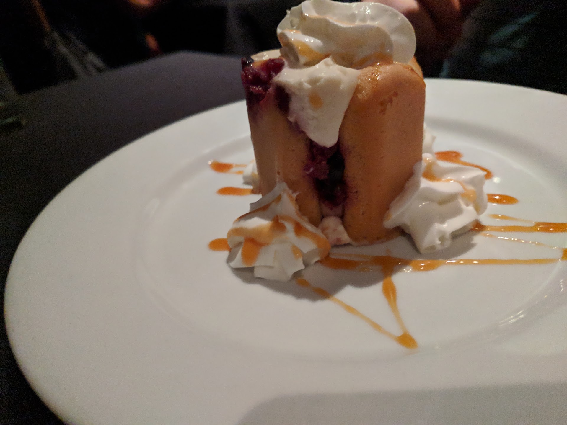 Read moreDecided to come here for date night and the last night of Restaurant Month where we could enjoy 3 courses for $35. The restaurant entrance was a little hard to find, and unfortunately the people in the hotel lobby didn't give good directions (should have said come into the elevator instead of pointing in the opposite direction leading us to walk in a couple circles before coming back to the hotel lobby and realizing had to take the elevator up to the 3rd floor). The restaurant has beautiful views and with both indoor and outdoor seating, and very attentive and friendly service throughout the evening. Ordered a glass of wine from the waiter's recommendation, but really would have been great to have a wine pairing option instead of just a 'wine flight' option. We ordered the fried pickles and chop salad as starters, neither were very exciting or flavorful; the pickles were bacon wrapped and the salad had blue cheese and a pancetta crumble. For the main courses we ordered The SeaVenture and the Country Pork Rib. The SeaVenture reminded me a bit of Campbell's Tomato Rice Soup with a seafood variety on top.. wasn't my favorite in seasoning, but the clams stood out as very delicious. The Country Pork Rib was served with a coleslaw and beans on the side, and the meat was perfectly cooked although also a little bland. For Dessert we ordered the Orange Creme Brulee and the Fruit Trifle (Lady Fingers and whip cream), the Creme Brulee was my favorite part of the entire meal, perfectly hard on the outside with a delicious hint of orange. Overall I was very underwhelmed by the food and wine, but the views and service and ambiance were hard to beat. I hope to try them again with some...
