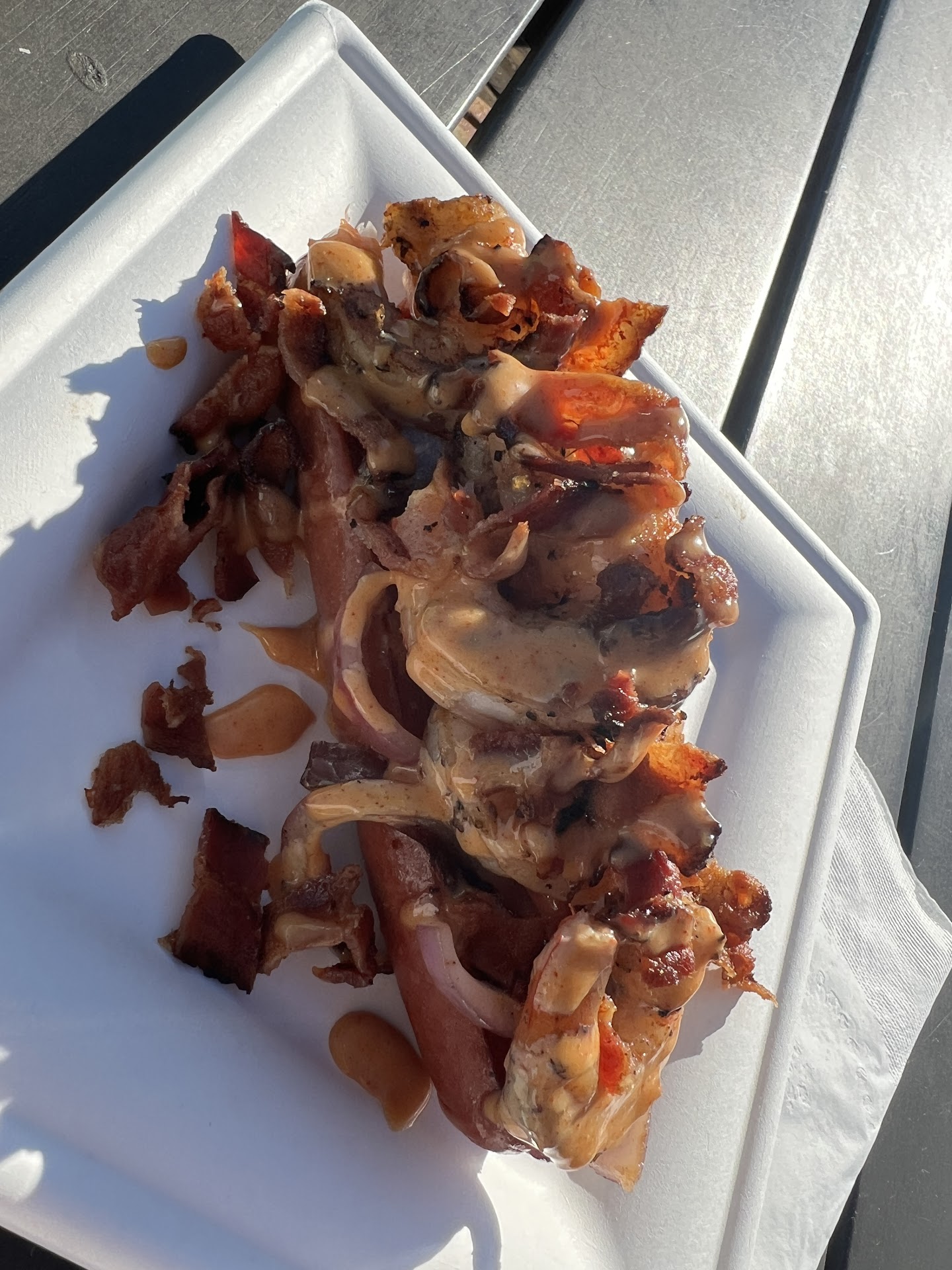 Everything here was far beyond my expectations to say the least. I thought walking on a pier I would see a hot dog vendor and maybe a man with a push cart selling ice cream. What I found out was that Sunsets at Pismo was the first food vendor as you're walking up the pier and honestly might have been the only one because I had to look no further. I tried a little bit of a lot of items here as me and some friends were looking to hang out in Pismo somewhere nice, casual and with good vibes. First off we were greeted by very friendly and helpful staff. They had various drinks including water, iced tea, beer etc. The menu is quite large for what I expected when I saw what equipment they were using to cook so that impressed me quite a bit. Okay to the food.... Shrimp tacos were epic and probably my favorite. The avocado crema was delicious and the shrimp was definitely fresh. The cabbage was very nice, fresh and crisp. I also had the pleasure of having their spicy chicken sandwich aka "the hot chick" Let me tell you that this was no joke. Make sure you have something to drink because it is SPICY. It had some sort of apricot spread on it as well and the brioche bun they used was just perfectly soaking up the Nashville hot sauce used. The cabbage again here was on point and add a pickle for the win. We had also a fish taco that I devoured in I believe two bites because I don't even remember chewing it. Not because it was small but because I inhaled it I guess from how good the fish used here was. Speaking of fish, the fish n chips we had also ordered were amazing. The beer batter used was excellent and really stuck to the fish not just flaked away like other places I had visited. The fries were thinner than I was used to which was awesome because they stayed crispy (along with the fish as well) long after they had been served. It was the last Item we ate and the portion was large with a nice tartar and cocktail sauce to accompany. Compliments to the Chef Jonathan for recommending this place and to my friend who...