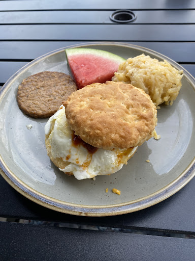 As a vegetarian, there are LOTS of options, which is so appreciated since so many other local restaurants really leave us out of their menu planning! My favorite so far as been the Wild Mushroom Wrap!! Ooh the breakfast burrito is incredible, too. And their take-home baked goods! Really just ALL of it. :) Ahh and I can't wait to try one of those amazing looking gigantic cakes in their case up front!
