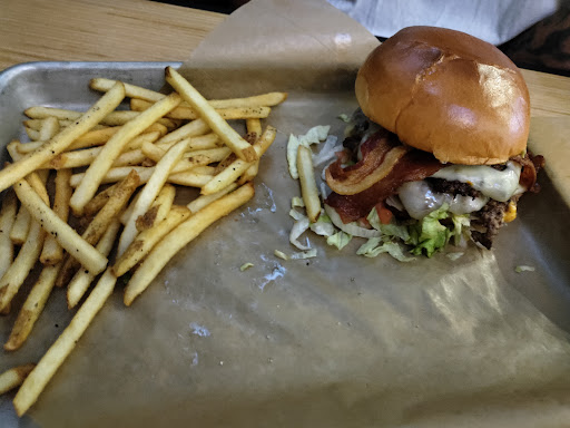 Read moreService was slow, but not ridiculously so. They were understaffed, which explains the wait times. The food was good, prices were a bit high but not bad. Paid $13.49 per burger, they came served on a metal tray with a sparse serving of over salted french fries. The double patty burgers made up for the lack of fries, and they were superb. The strawberry lemonade was 3.25 and was delicious, but the size of the glass in comparison to the NINE DOLLAR bloody Mary was just sad. The bloody Mary was over 9 dollars, an extra $3 was added for a higher quality liquor and for "wild sides"... Which consisted of half a sad looking celery stick and two red jalapeno peppers. Yep, that's it. No onion ring, no pickle, no olive. Absolutely nothing fancy, for an extra $3. So that was a disappointment. And the size of the glass for the bloody Mary was about 2/3 of the size of the much cheaper strawberry lemonade, although that was obviously alcohol free. Also, the glass was almost full to the top of ice, so definitely felt like we got ripped off on the bloody mary. Service was friendly, food and drink were delicious, price could have been better on some items. Overall, four...