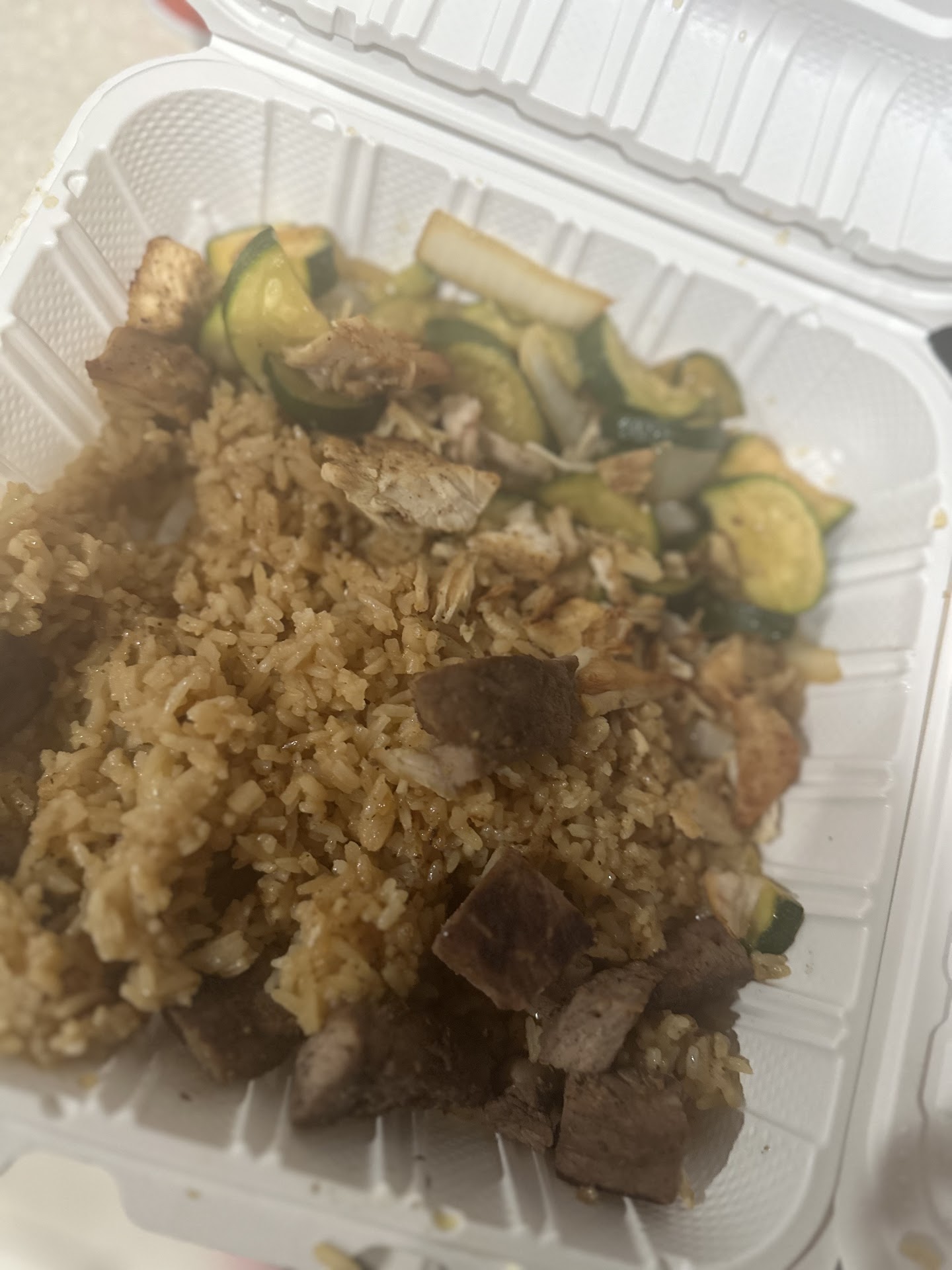 An hour for my food, with just 7 people ahead, was unacceptable. The steak was tough, the chicken dry, and the rice oily. The lack of empathy from the cashier added insult to injury. Needless to say, I won't be returning. I should have listened to what I read in previous reviews.