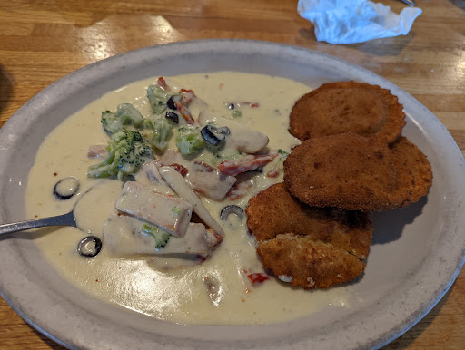 I had never eaten at Mazzio’s before and, I have to say, I was impressed! The salad bar is so full of goodies your bowl is full before u can get everything u want. And the pizza is hot and really good. The pasta was perfectly cooked. The best part of it all was the politeness of our waiter. He was a joyful and kind guy who seemed genuinely concerned with our being satisfied. Nice clean place and calm atmosphere. I’ll for sure be going again! Thanks