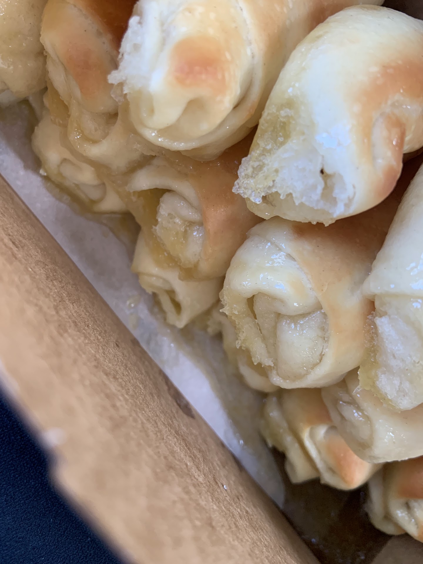 So far my two experiences here has been hella good! The bread comes out freshly baked and glistening with butter and syrup or whatever that’s on there. I was there last Sunday when this man yelled at the lady giving the orders. He said “Where’s my bread!!??” And then proceeded to argue with the lady that she took his order and that the woman after me had gotten her bread. She didn’t take his order but he kept arguing that she did. She then told him that that lady did not get bread and that she got donuts . It was hard to tell the cashier apart from the person giving away the bread because they all had masks on and similar hair.