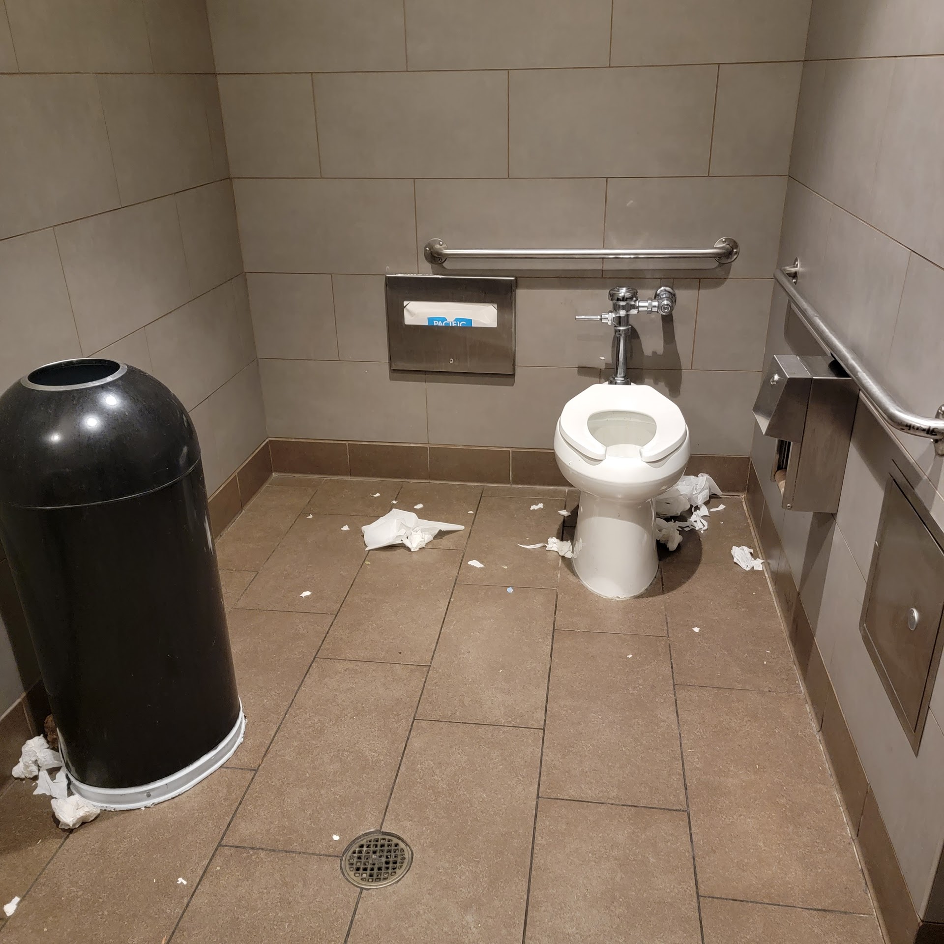 I came to this Starbucks after a horrible night of no sleep thx to some kids partying until 5:30am or so and keeping me up. I just wanted a nice coffee and to do some work on my laptop… of course, after a few sips, I needed to use the toilet…. At 6am, this photo is what the bathroom looks like. Since this store opens at 4:30, the workers had been here for HOURS & nobody bothered to clean the restroom? The lights to the hallway weren’t even on… and the workers scoffed at me when I asked them the code to get inside… Come on!! Have a little pride in your work! Nobody likes the cleaning part of this job but that is absolutely disgusting in a place where people eat…the employees have their own bathroom so my guess is they never even bother to ever go inside the nasty public one…and..