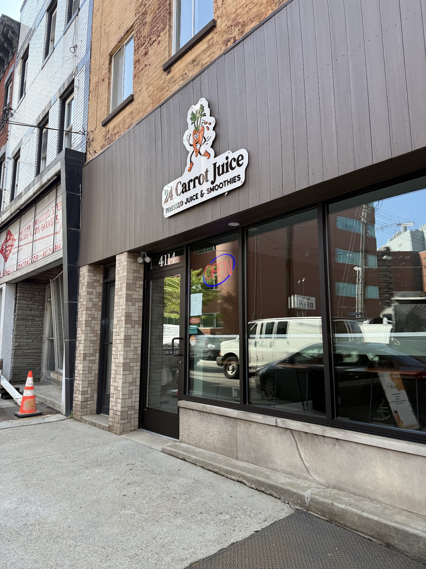 24 Carrot Juice is one of the best juice shops in Pittsburgh! They only use the freshest ingredients and truly believe that healthy living starts with what you put into your body. Thatâs why theyâre committed to creating the most delicious juices and smoothies using only the finest organic ingredientsâto bring the joy and benefits of fresh, natural juice to Pittsburgh. Every item on their menu is nutrient-packed, bursting with flavor, and designed to make you feel amazing. Iâve tried several of their juices, and every single one was incredibleâyou honestly canât even tell you're drinking so many good fruits and veggies! One of the coolest things? They let you sample before you buy! I also tried the Green Machine smoothieâpineapple, banana, spinach, kale, avocado, almond milk, and honey. It was a fabulous way to get my nutrients and tasted amazing. They have a ton of smoothie options, and their bowls are top-notch. I chose an açaĂ base and topped it with granola, strawberries, raspberries, kiwi, blackberries, blueberries, agave, and a peanut butter drizzleâabsolutely hit the spot! The space is super clean and inviting, with a few spots to dine in or take your order to go. The ownersâa husband and wife duoâare clearly passionate about what they do, and it shows in both the service and the quality of...
