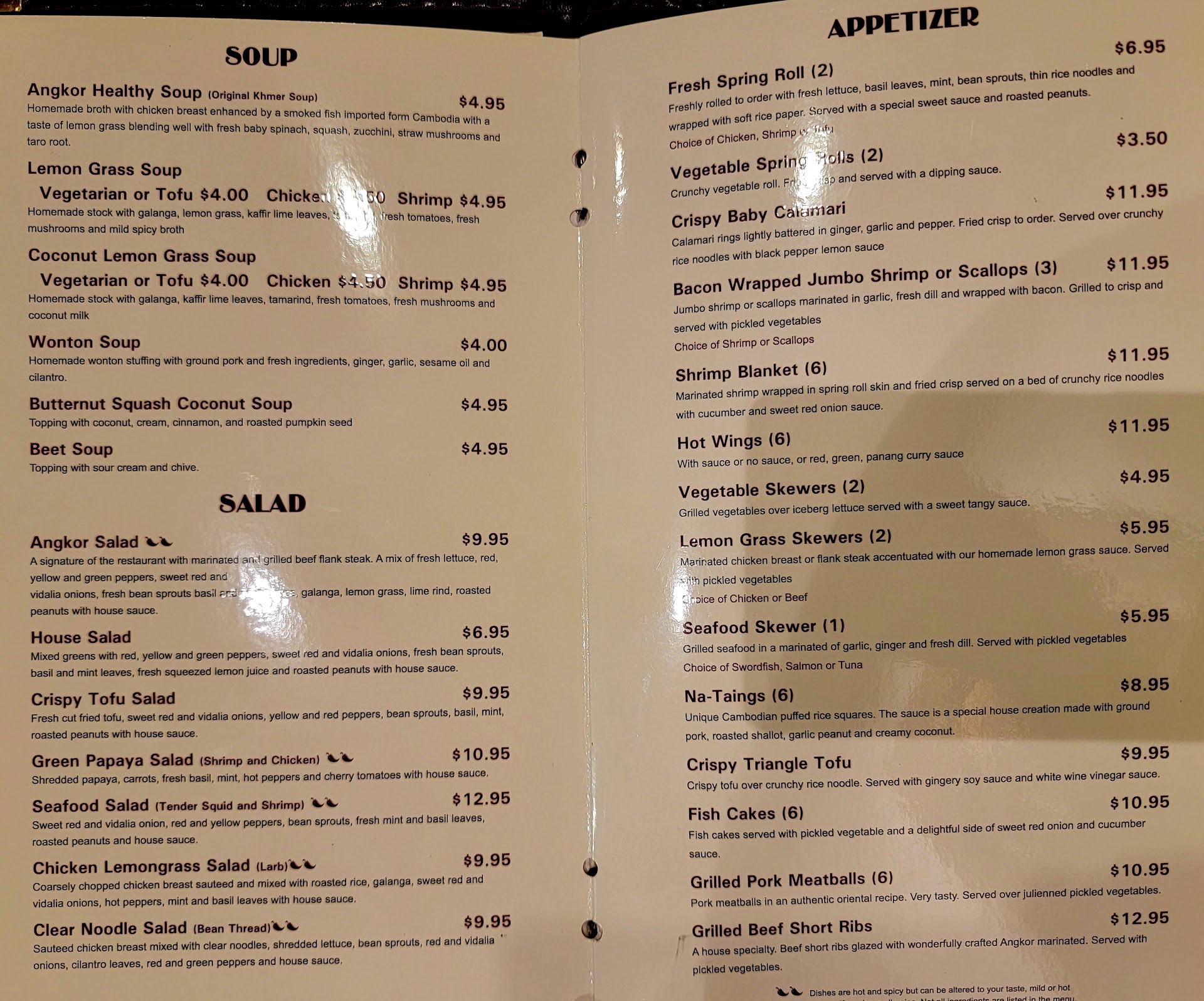 Read moreWhile visiting Pittsburgh on a chilly, rainy evening, we were looking for a warm and hearty meal to "hit the spot." We read the overwhelmingly positive reviews for Angkor, a traditional Cambodian/Thai restaurant, so we were convinced to check it out.