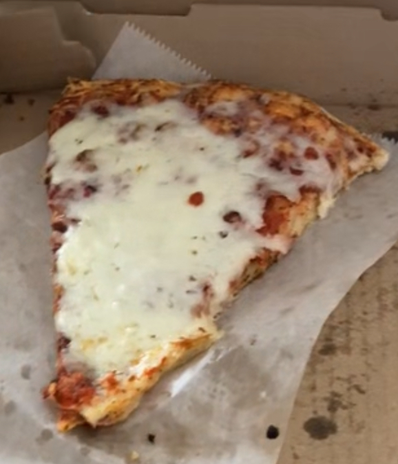 The cheese pizza was amazing! The red sauce is so flavorful. It has a nice hint of spice, some herbs in there as well, and some sweetness to balance it out. The crust isn't too thin or too thick. And the portion is - oh my gosh, it is huge! Delicious cheese. The only negative I would say is the crust is kind of mediocre.