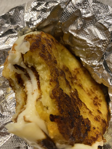 The cachapa was a bit sweeter than I expected (comparing it to Cilantro and Ajo), but was still very good. It's a little small but also very inexpensive. I ordered the plain version and thought the cheese was delicious, and it had a ton of cheese. The churros were quite good as well (first time having churros). They made them right in front of me as I was picking up the order. You get 6 and a choice of sauce. They were still warm, but a bit too hard. There wasn't a whole lot of sauce on them, too, but they were still soft and tasty in the inside.