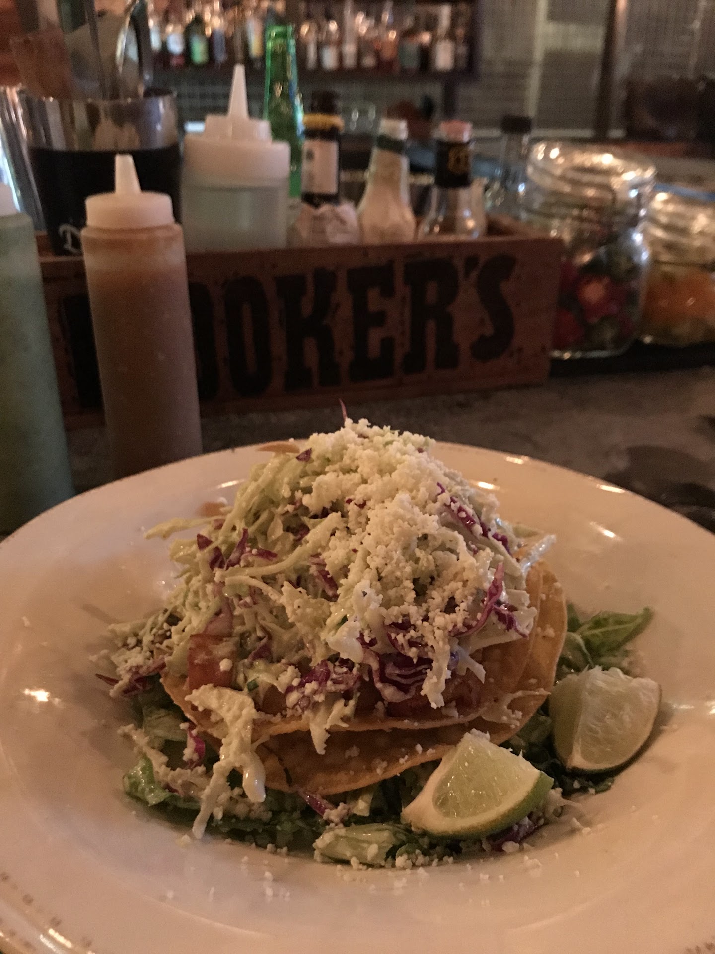 Read moreMy experience here was quite underwhelming. I was here early after work on a weekday and sat at the bar with my friend and ordered the grapefruit margarita. It was ok, a tad too sweet for my taste. As I looked at the menu, I had some questions about vegetarian options and asked the bartender if a certain dish was vegetarian. Our bartender that day was NOT in a good mood. He seemed annoyed that I had a question in the first place. He didn't even look at us and mumbled a response. I couldn't catch what he said, but a bit intimidated by his attitude, didn't ask him to repeat it. We ended up ordering the papas toastadas which tasted good. But by then, I needed my next drink! Uhoh.. time to get our pissed off bartenders attention again! I got the spicy margarita. Normally I love a kick to my drink but what I was served that day was undrinkably hot.. Sweet, but also really really hot. One sip had my lips, mouth and insides on fire. My friend, whose spice tolerance is much higher than mine felt the same way. We asked for water (much to our bartenders annoyance) and waited a whole 10 mins for it! By then the bar had gotten busier and I certainly didn't want to deal with the already grumpy bartenders attitude if I requested an adjustment to my drink. So, as a favor to my digestive tract, I left my entire drink untouched. Oh, we did order their two vegetarian taco options which tasted fine. But if it's tacos and awesome margaritas you're craving, I'd direct you to Täkō or Condado tacos, both of which are in the same area. Better cocktails, better tacos and the added benefit of not having to feel like you're getting on your server's nerves every time you...