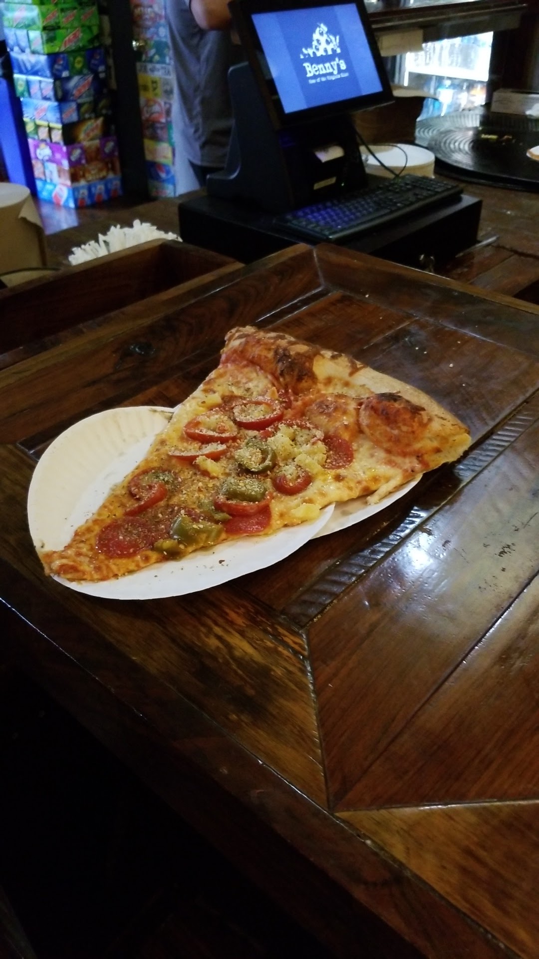 Read moreHoly pizza crust! We went to this neighborhood to eat at another establishment in between sessions of the NCAA Wrestling Championships but decided to try this out because of the long wait at the other place. My feelings are not hurt about it one bit because it satisfied my constant yen for authentic New York style pizza that I can't get in my hometown. I'm quite certain it's the biggest slice of pie I've ever eaten, even in NYC, and I enjoyed every bite. My should-know-better was immediately vetoed by the siren call of the hot gooey cheese, for which the roof of my mouth will pay the rest of the weekend. Worth it? 100%. The crust was perfectly thin and crispy. And the crust at the end? Well, we call those pizza bones because our dogs love them so much and this was legitimately the size of the actual dog bones we give them. I felt a little guilty eating it myself but only a little because my dogs are at home halfway across the country. We will be returning to Pittsburgh late summer. Will I be making a second stop at Primanti Brothers? Nope but Benny Fierro's will definitely be on my...