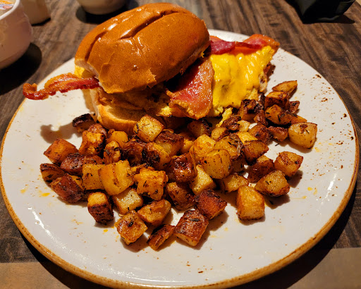 Read moreThe food was so awesome! I had the mac n cheese with chicken, so, so tasty. It is cooked in a little iron skillet and baked with crunchy bread crumbs on top. My friend had the meatballs which were equally delicious. Beforehand we had ordered the tater tots served with three sauces. Absolutely the tastiest ones I've ever had. The only regret is they wouldn't let us sit outside where it would have been much quieter. Inside the restaurant it is very echo like, we were near the bar and also there was a group of people in there that had a person in their party that I think had a mentally challenged person who totally can't help it but she kept yelling out and it echoed so badly in there that we had to shoot to hear each other talk. Other than that it was a...