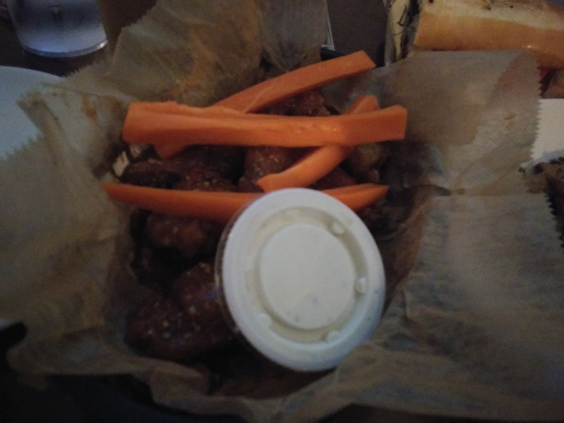 I have heard good things about BT, but not eaten here before today. I ordered a dozen wings with seasoned salt and french fries with gravy, to go.