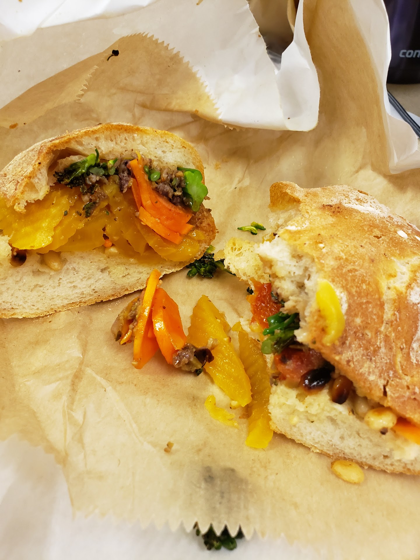 Went here for breakfast with a co-worker while we were at a conference. I was not sure if it was because I was hungry or it it was really that good. I had the breakfast egg sandwich on a chibatta roll with the additional sausage. To say it was delicious and that it hit the spot is an understatement. Something to be said when a friend egg is cooked just right, so the yolk runs, but not that much. The sandwich also came with lettuce and tomato with Swiss and cheddar. Yum! So we we decided to go back the next day and don't you know, it was good on that day too. So this is a definite have to visit location. It is my understanding that they have a sister store not to far away as well. Haven't been to that one, but I have to recommend this on not only for the food but for the friendly service that we got.