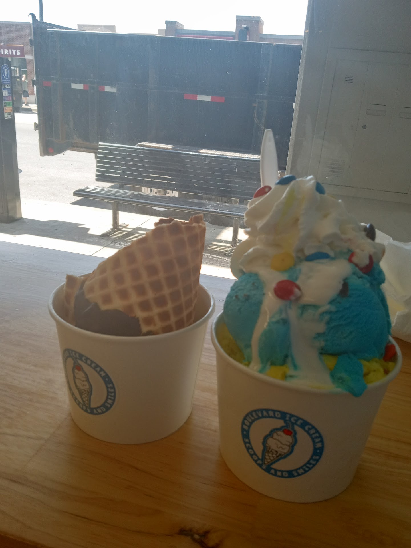Pro Tip: Get the waffle cone. And if you walk down to the light by the CVS, there are...