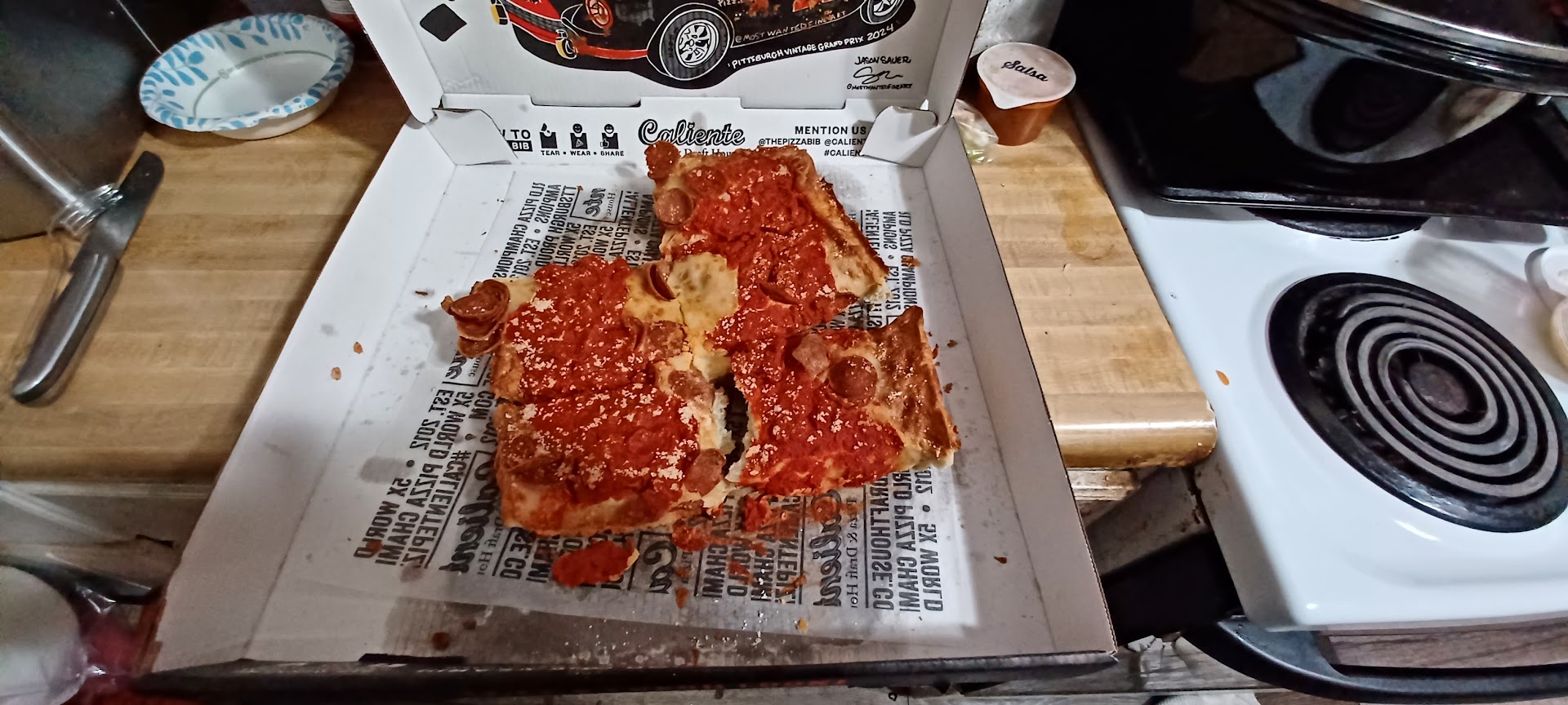 The food inconsistencies are just so far apart, I had to leave a review to warn others. UPDATE: I tried them again because my Ole lady was craving square pizza. Epic fall! Got the 8 mile well done with double pepperoni and mushrooms. I'll just post the pic before it hits the garbage truck. I mind you, we paid 38 plus bucks for this one pizza . On top of this, not being the pizza, we expected there's ZERO mushrooms and less pepperoni than 1 order of pepperoni. As I stated before. The inconsistencies here are real, and they...