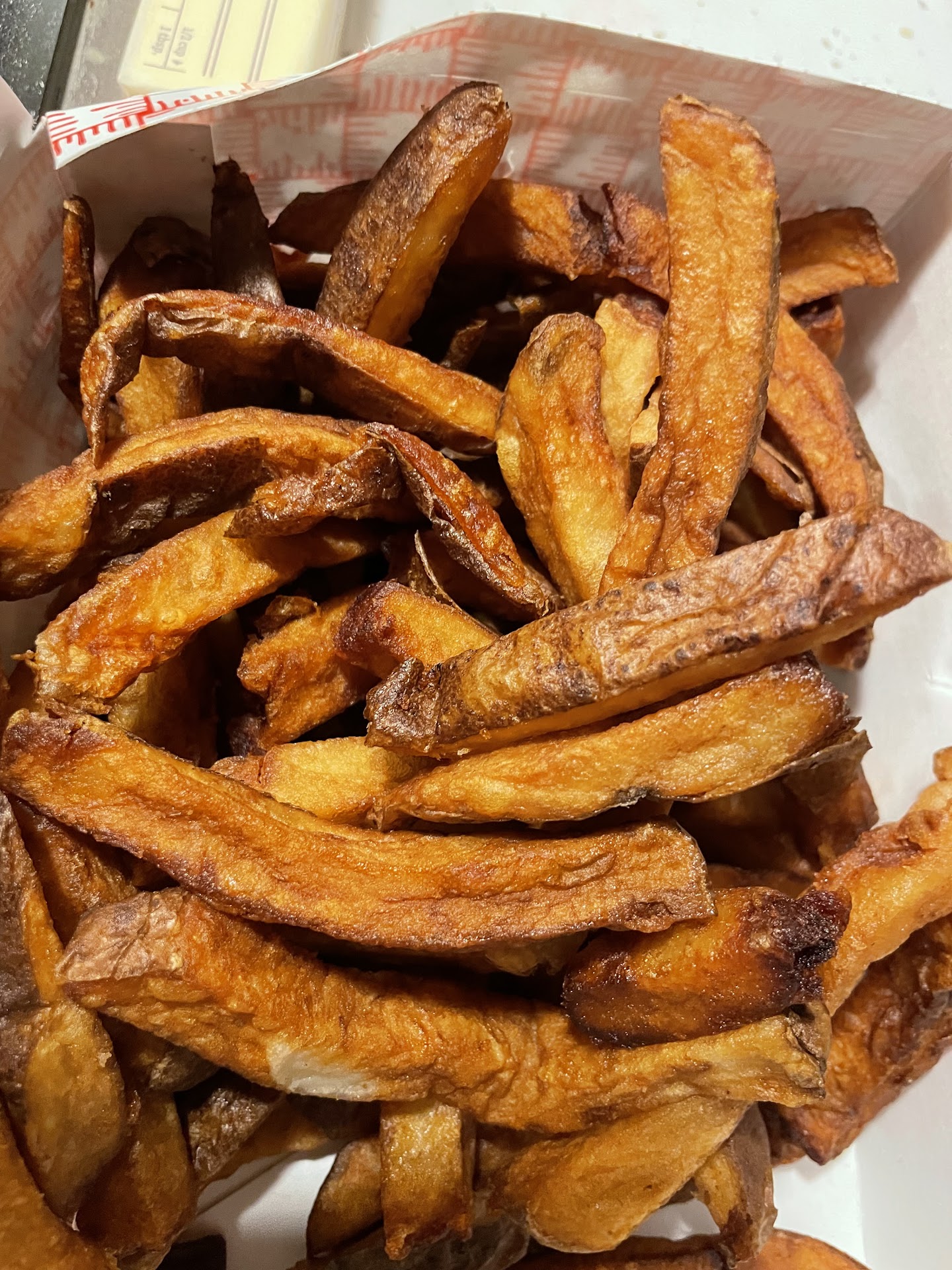 When I got the French toast sticks, I thought I was given someone else's order. The box was huge! I assumed these would just be a few small sticks. Instead, I got a mini pizza size of French toast bread sticks! It basically bread topped with cinnamon sugar and icing, but dang is it delicious. I also assumed this would just be microwaved toast, but to my surprise, it was homemade! So much sugar and plenty of icing provided (icing on the side). Love these French toast sticks.