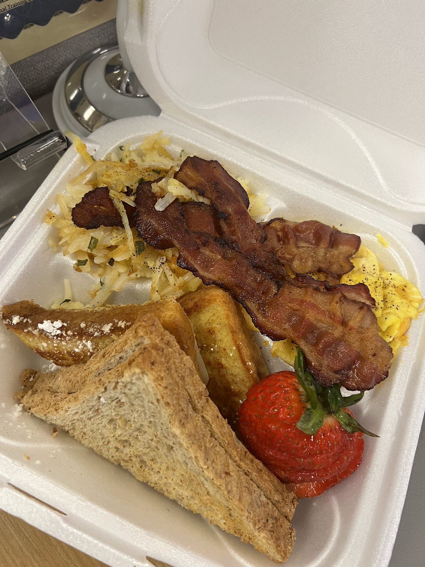 I also ordered a side of crispy bacon that was crispy (thank you) and 2 sides of hash browns that DID have a description and said âshredded potatoes with seasoningâ and were $4 each. What they actually were was shredded hash brown patties soaked in greaseâŠeach for $4?! That price was already too much but for 1 patty? Wow. My husband got an omelette without onions and it wasnât even an omelette, it was just rolled up? And lastly, my scrambled eggs were also dripping in grease/butter. Not at...