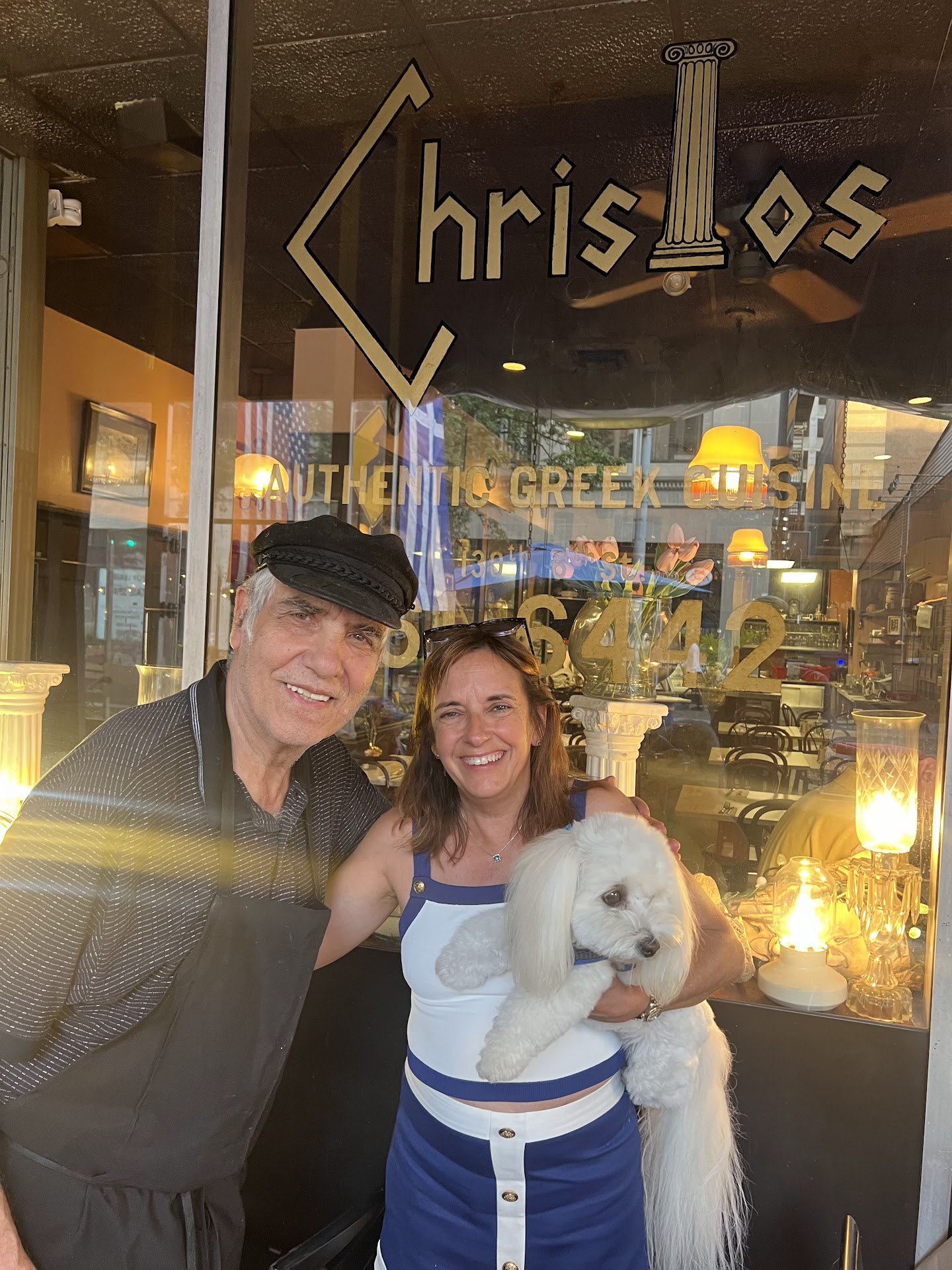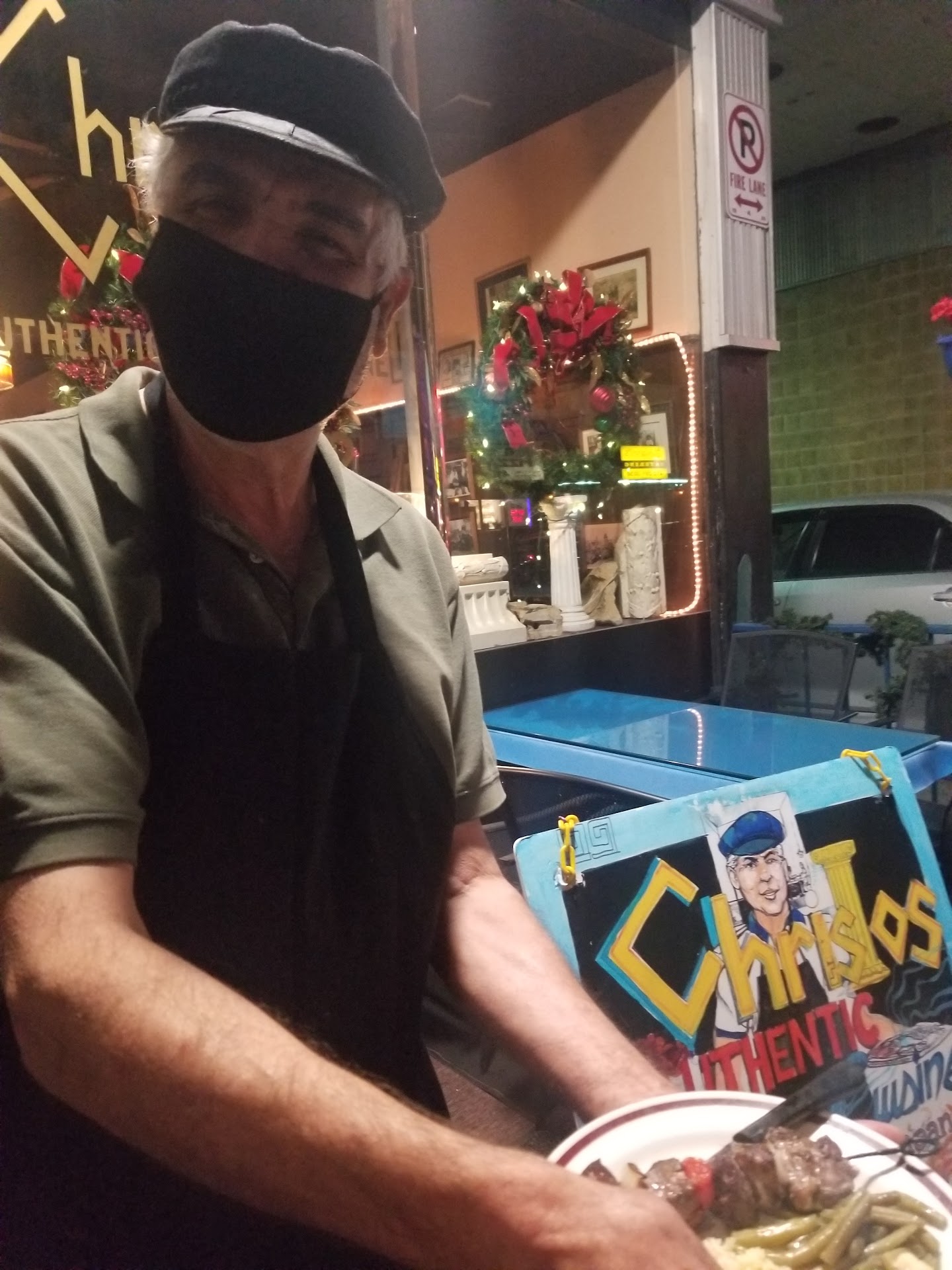 Christos is a step back in time and across space. It's Old World time, where things happen when they happen. The space? I felt like I was a traveler, tired from the road on a trip to Greece, invited into a family farmhouse for a warm meal and a rest.