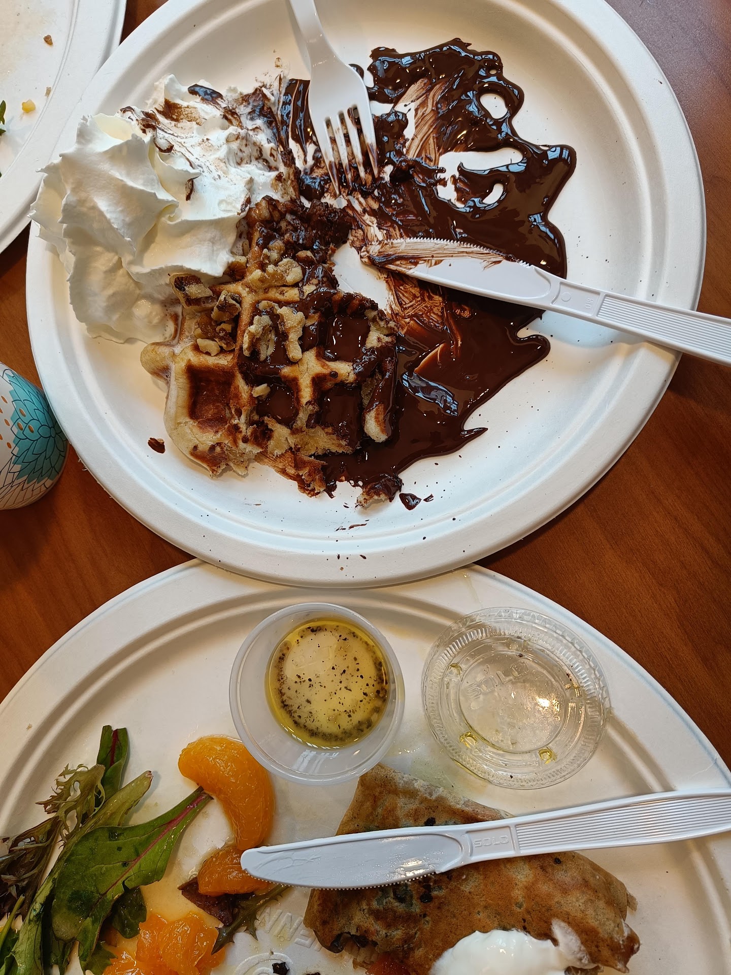 My two favorite menu items are the ham and cheese crepe and the breakfast crepe, which features eggs and a hearty amount of sausage and cheese. Each crepe is served with an always fresh side of greens and a house-made dressing on the side, which is both sweet and a little tangy, but never overpowering. The hot chocolate is also velvety smooth and really hits the spot...