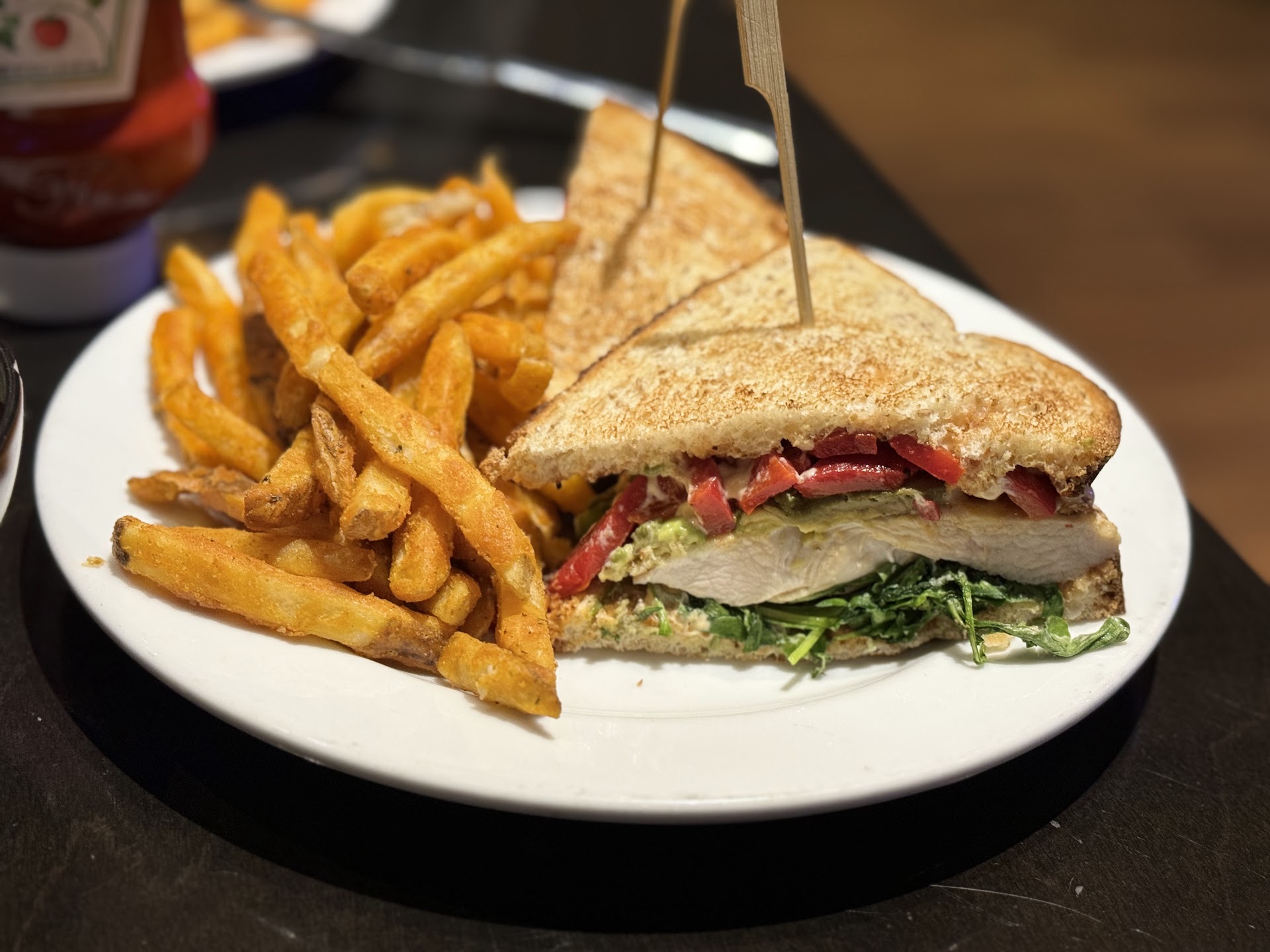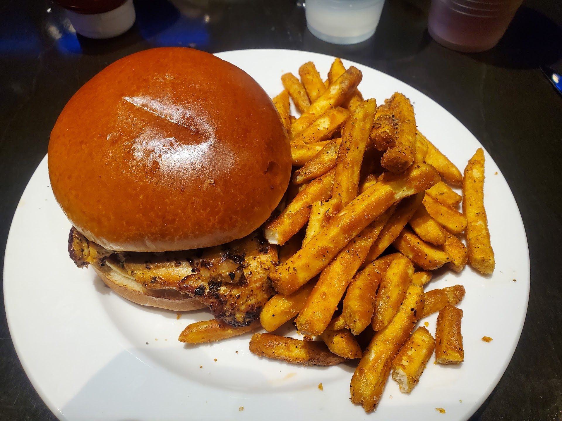 Nice little bar and grill inside the Pittsburgh Marriott Center in downtown Pittsburgh. The place was quiet with only a few other patrons on a Sunday night. I arrived at the hotel late after a delayed flight into Pittsburgh and a delay with the rental car agency. I stopped and ordered the grilled chicken sandwich with a side salad and had a Maker's neat while I waited. Jaime, the bartender, was really nice, and I enjoyed the conversation regarding the area and how business was doing. The salad was full of fresh clean greens and ripe tomatoes. The grilled chicken sandwich was excellently prepared, cooked perfectly, and needed zero condiments, exploding...