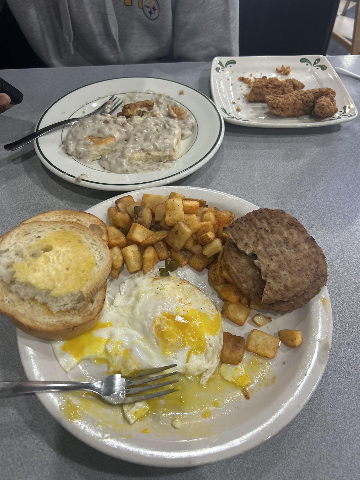 First of all every time I order over the phone & go in to pick my order up something is missing & not made & have to wait 20-25m for the rest of my order while my other food is getting cold. Every time. I order from here frequently (even when they mess up I make the mistake of going back & being disappointed every time) stupid I know. The last and final time I went there they forgot my oatmeal w fruit and toast, she told me since it’s oatmeal it will only take 5 minutes. 5m that seriously turned into 20-25. In the meantime while waiting I sat at the little bar they have (which is right behind the grill) you can see all the food being made. NO ONE on the grill, NO ONE boxing the food & NO ONE cleaning tables had gloves on. One of the people on the grill stepped off for a moment to take out the trash (no gloves) came in & got right back on the grill w out washing his hands. The lady taking my order went outside to smoke a cigarette, came back in BLEW HER NOSE , never washed her hands and started waiting on tables. Another waitress dusted the mess from the previous table onto the floor and immediately sat another party. The people on the grill mostly boxed the food & the sides of his hands THAT HE DIDNT WASH was touching the sides of some food. & NO ONE wears a damn hair net. Never ordering again. P.S. if you order take out ALWAYS check all your food . Especially the bacon bc it’s...
