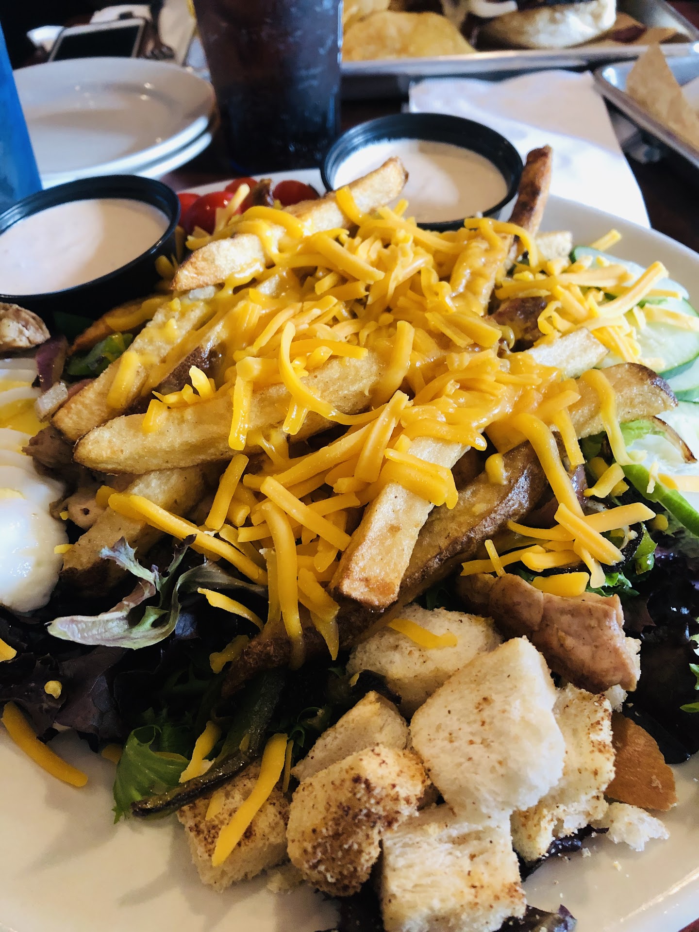 I had ten garlic parm traditional fried wings, which were very good. Cooked perfectly and quite fat. They have smoked wings were huge and both of my friends said they were delicious. None of our food stood a chance and even though I wasnât feeling the best, I crushed my wings and quesadilla.