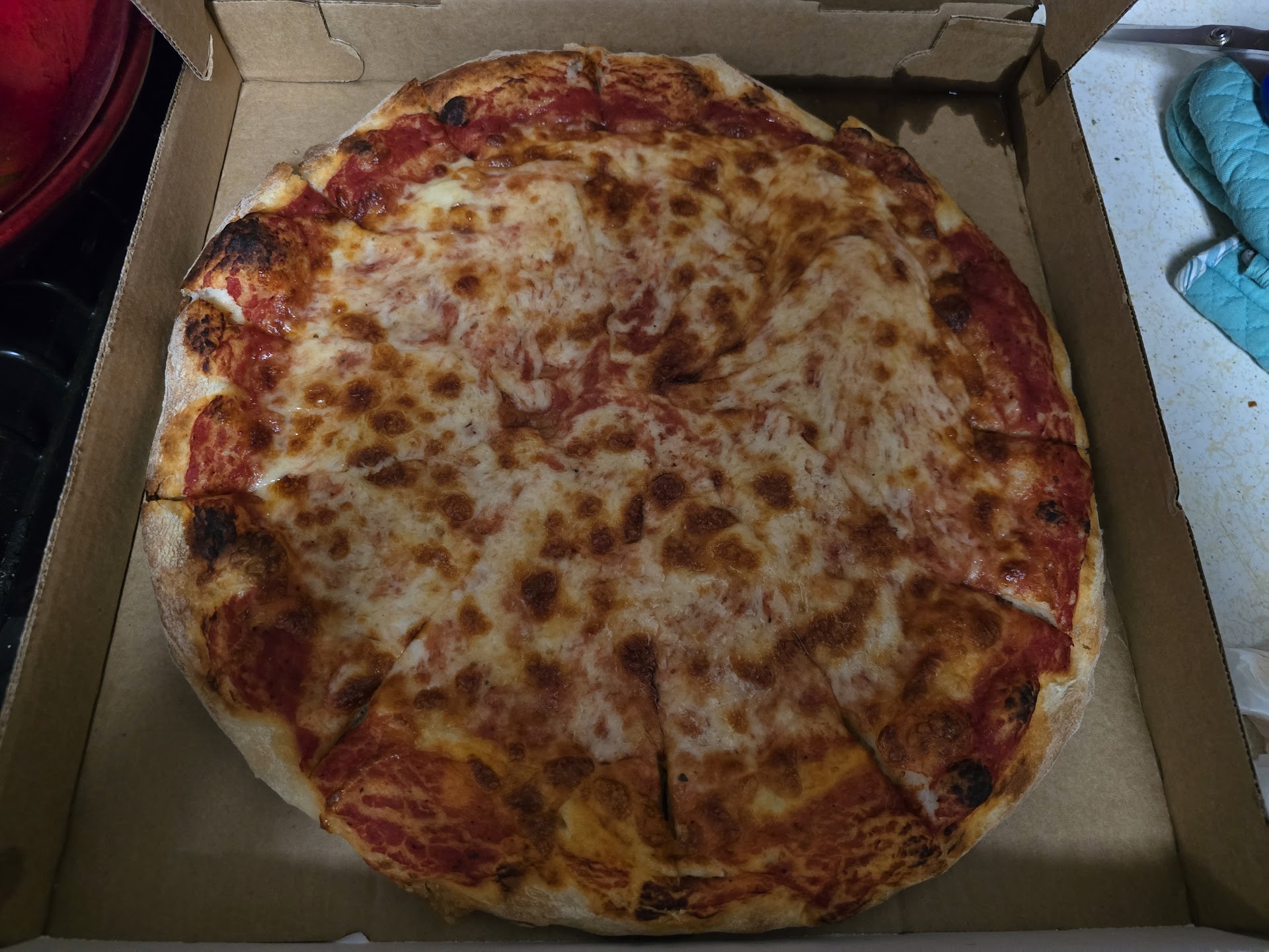 On the other hand, the cheese was excellent, and the pie had a fairly nice balance of cheese to sauce. Although I would have liked a little more sauce, my daughter and wife liked it the way it was...heavy cheese impact. Again, the cheese was excellent.