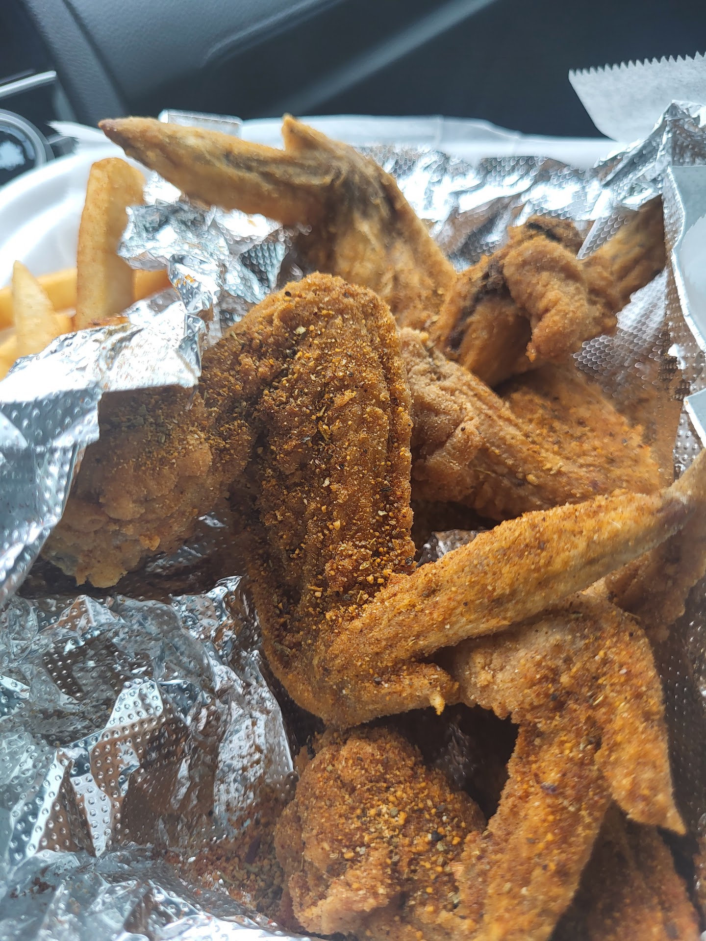 I am either going to never order from another chicken shack in this area again or just have enough time to check out portions and sigh and ask for a refund like we have before but we were in such a great mood to support a similar community we come from and get done like this after giving this establishment a $9 tip.