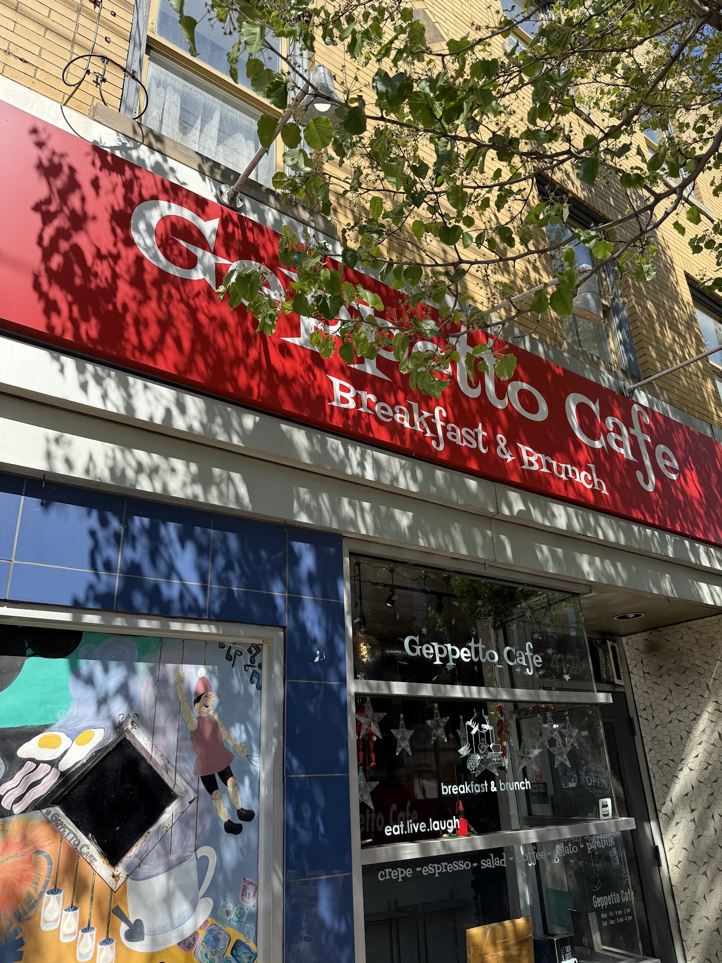 Read moreVery very unique experience in this cafe! Not many places have books, puppets, and green foliage hanging from the ceiling, AND also serve amazing breakfast! 😍 If you are looking for good crêpes, like super good 😌, this is the place to go. With so many different varieties of crêpes and so many options for toppings, you really can’t go wrong with anything you order! Our order for DRINKS: 2 London fogs (one hot, one cold) Our order for BREAKFAST: the Geppetto signature (crêpe plate with sautéed caramelized apples, cream cheese glaze, and topped with cinnamon & caramel sauce 🤩🤩) and the Nutella Classic (obviously Nutella, strawberries, banana, and chocolate sauce! 😋) Both amazing choices! They are known for their signature crêpe plate because of those apples with the cream cheese glaze… yummmmm. And finally, our order for SIDES: eggs 🍳 and bacon 🥓👌 I will also add that I was very impressed with our server! She was very timely and attentive to us! 🤗 I would suggest going in the mornings when they open. That’s when we went, but by the time we were heading out they were getting pretty busy! Peep 👀 these photos for some yummy food, tasty drinks, and “It’s...