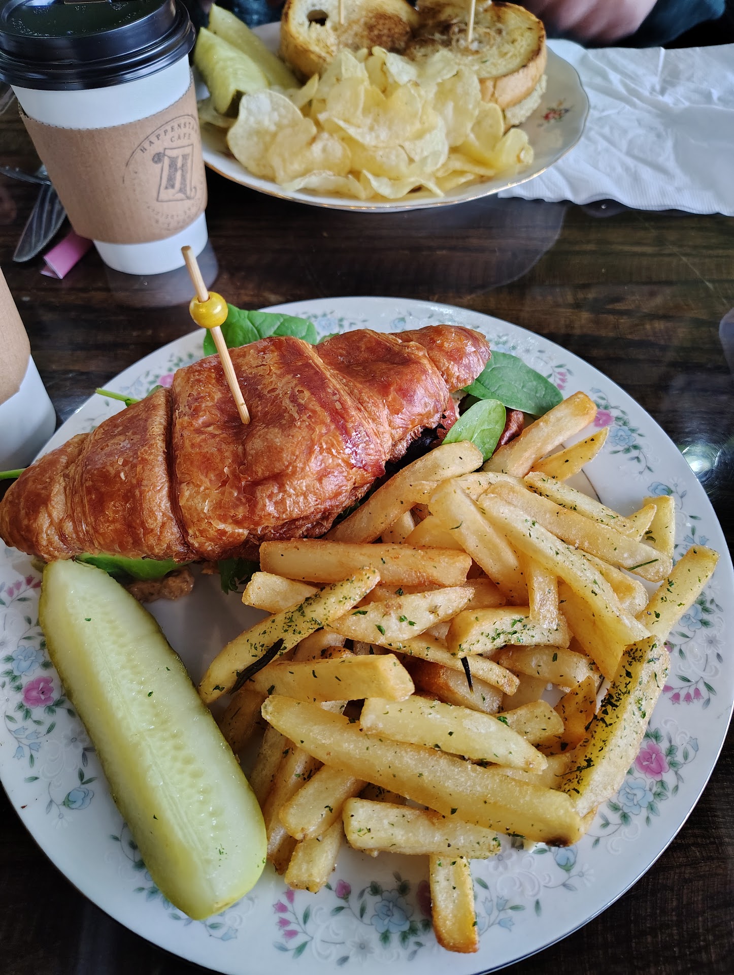 Read moreIt is not happenstance that Happenstance Cafe is so wonderful! Happenstance is such a great addition to the Lawrenceville/ Bloomfield community. It is a fun, quirky spot with lovely decor and very kind service. The food and beverage menu is small but mighty. The cafe utilizes a lot of local vendors and food suppliers. I love to see local businesses working together cooperatively. When we visited I tried a lavender latte. It was made perfectly and tasted great. We tried the chicken salad sandwich on a croissant. It was very good. The chicken salad recipe wasn't traditional and that was a nice surprise. We also tried the fried green tomato, bacon and pimento cheese sandwich. 🌟🌟🌟🌟🌟 5 star sandwich! Just really, really good. One of the best bites I've had in a long time. The flavor profile was on point. I really recommend trying Happenstance and this...