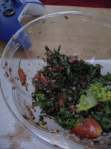 Oh! The manager yelled at them. They're working on the order now. That means pulling ingredients out of a bucket and placing them into a container. It feels like this whole restaurant, if you can call it that, was designed as if humans are machines who either produce or consume food. This restaurant is a contact doordash delivery, in person.