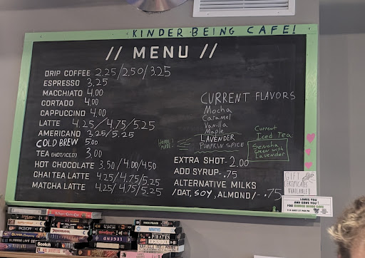 Read moreI got to know Max years ago as a worker baristaing at a different shop, who would steam every type of milk to perfection and was genuinely so excited to chat with every person who walked in the door - so I knew when he opened Kinder Being that it would be full of local art and love and great coffee! Turns out it also has an amazing crazy paint job, a mini tv, a VHS collection, homemade syrups, plants, and one of those sparky tesla ball toys at the table. All to say: I love this place, highly recommend for...