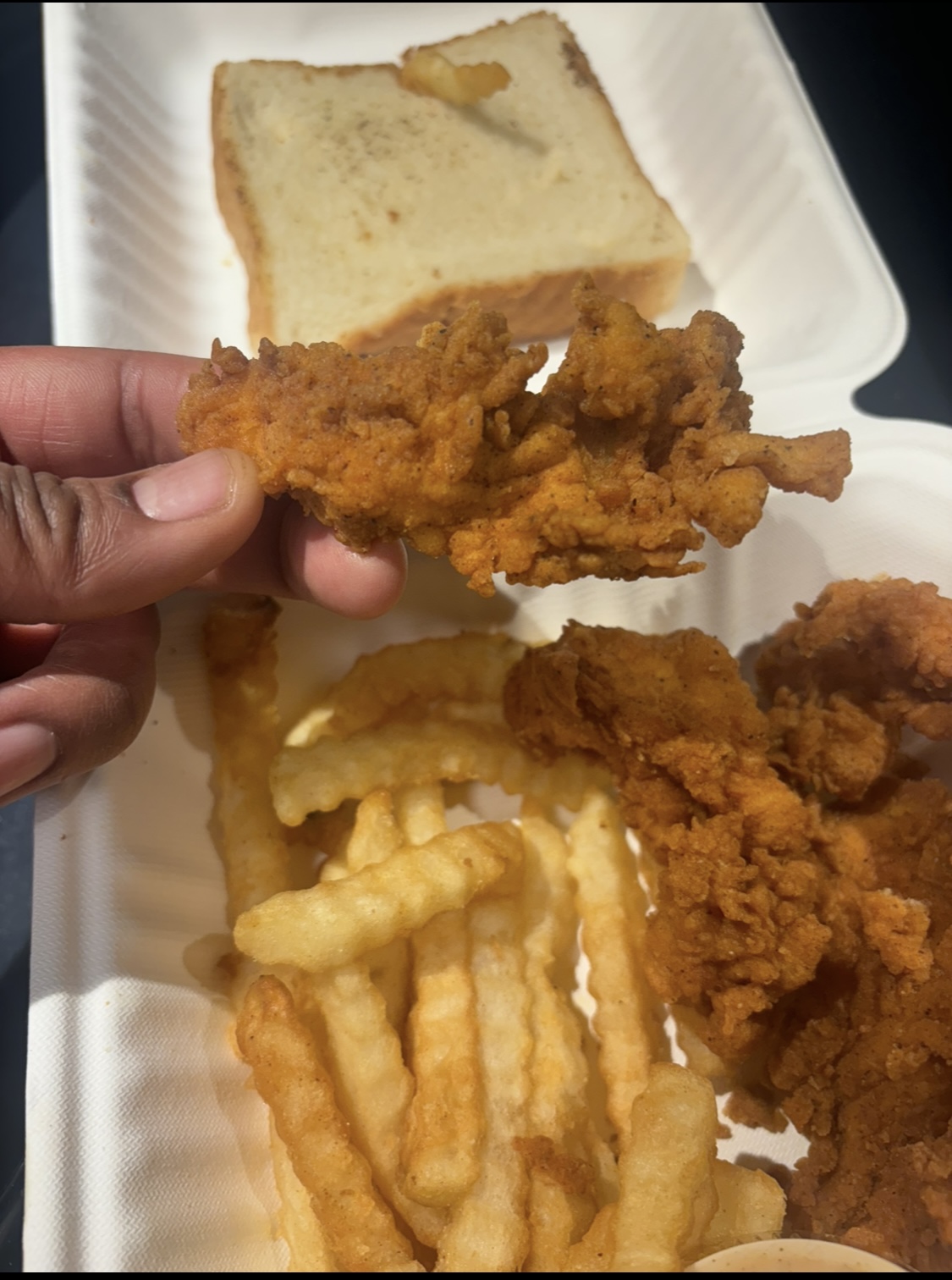 Then regarding the food itself, small fries portion, and the chicken itself was mediocre compared to the Oakland location. 5 tiny pieces of chicken which wasn’t even filling. Not to mention the chicken didn’t feel cooked through all the way and felt hard to even chew. I’ll stick with the Oakland laynes and never go...
