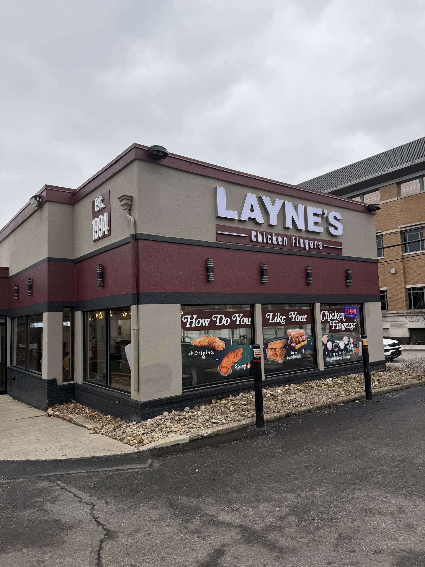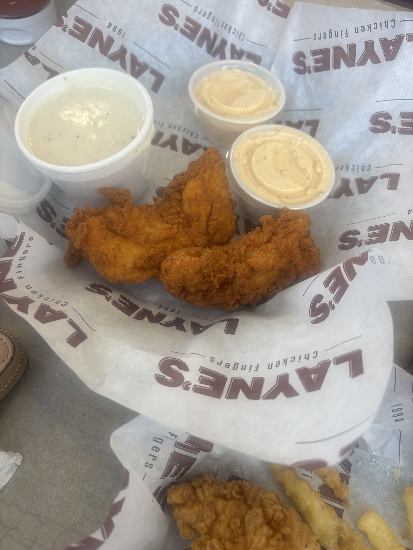 Read more4.5/5 Similar to Raising Cane's, but Layne's has the option of spicy strips (good heat without being overwhelming). Even their sauce(similar to Cane's) is more peppery. Layne's also offers several other sauces Their chicken strips are crunchier than Cane's, but mine were also smaller. The portion of fries also seemed small. Over all, great experience, restaurant was kept very clean and the woman at the counter was very friendly. I downloaded and ordered my food on their app, but it doesn't show that I earned any points. That said, I'll be back, it is nice that they have parking, unlike trying to eat at the Cane's by Pitt. I also hope to try a milkshake when I come back.