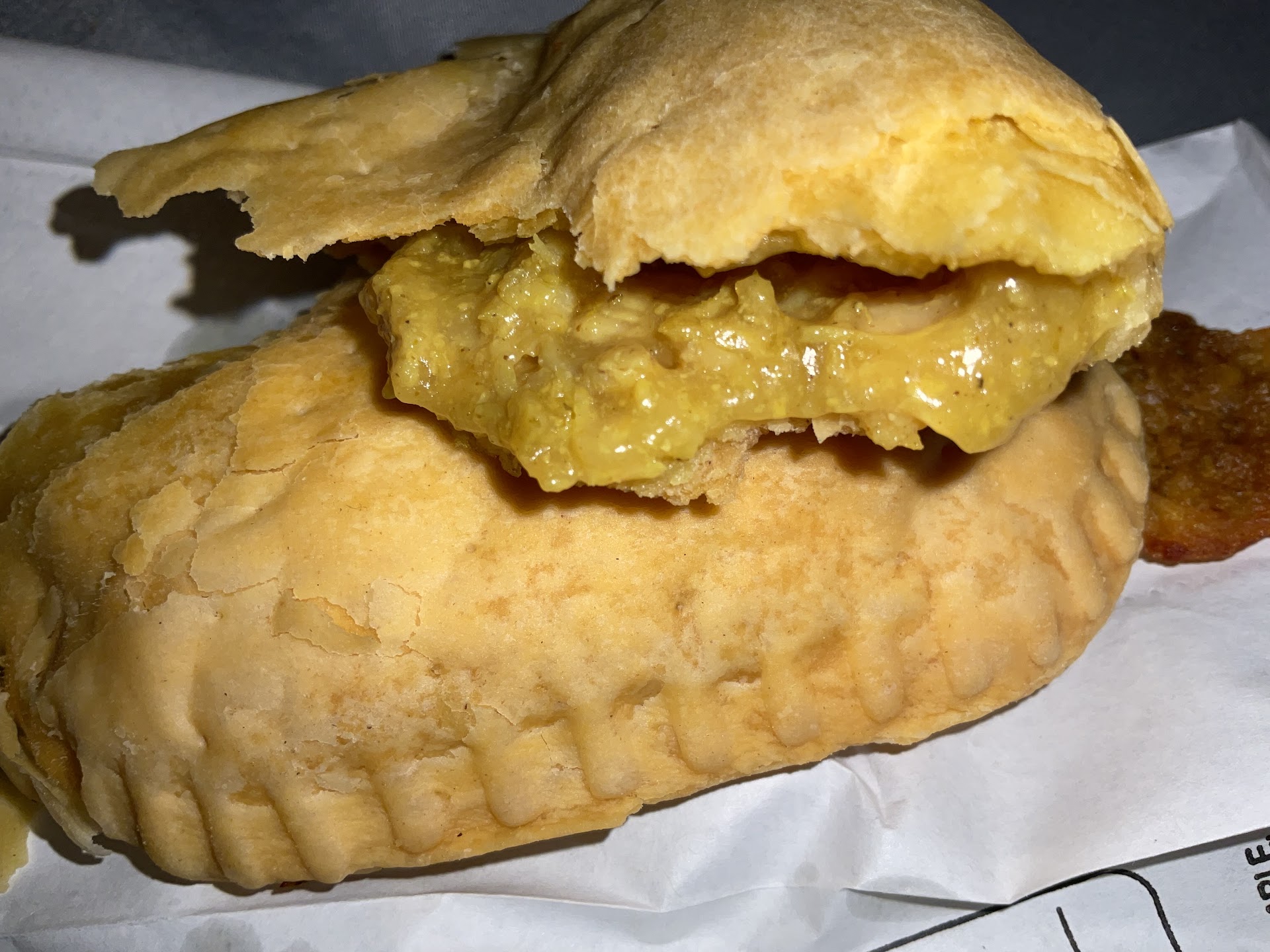 The cornbread was a nice addition to the meal. It was moist and had a nice, mild but lightly sweet flavor. The chicken patty was a bit spicier than I thought it would be. It seemed to have some sort of sauce inside, too. But, it was flaky and delicious nonetheless.