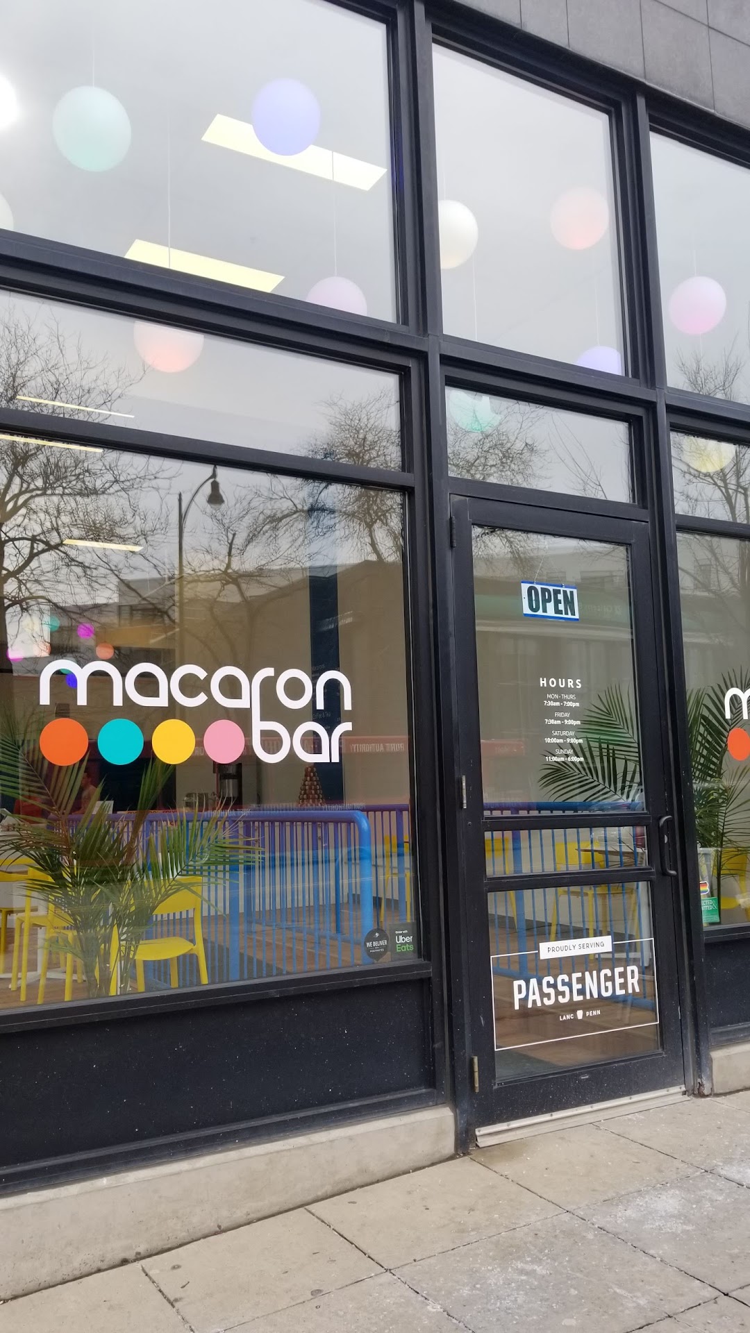 The Macaron Bar is a delightful easy to find little place on Penn avenue. I had been waiting months for this place to open. When you enter the building is nice and bright with white walls and a pop of color from the macaroons and the fun colorful balloon bulbs on the ceiling.