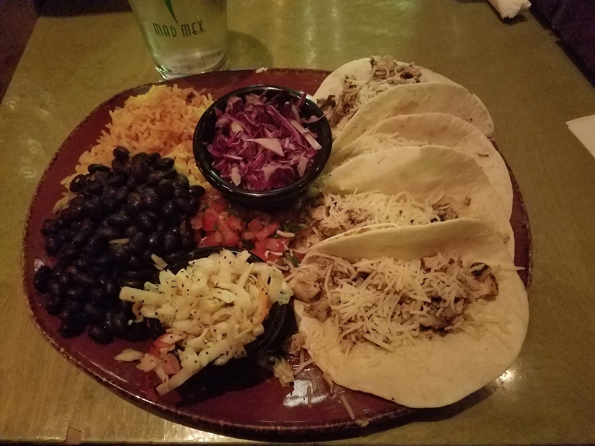 Tofu tacos- the tofu was seasoned and crispy! Loved that it was a nice amount of tofu in the soft taco. They offer vegan cheese/vegan sour cream to be subbed in which I did making it a fully vegan taco! Super fresh. Tasty. It was perfect. I normally have issues with places not preparing tofu good but Mad Mex did it right!