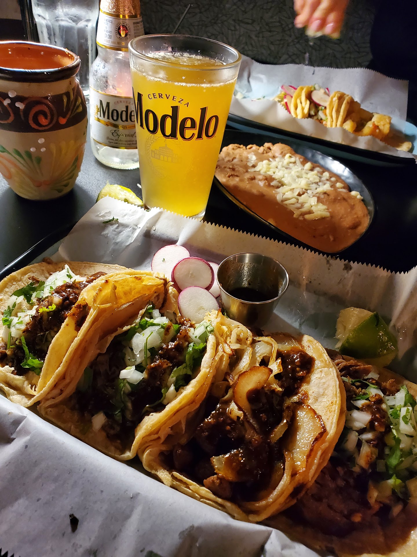More than the food, the restaurant itself took me back. My wife got tired of me telling her how much the vibe took me to Matamoros and some of the nicer places we'd visit. Late night tacos were very much a part of growing up but so was the music and the people hosting us. We had an opportunity to meet many of the great people working here and each showed us tremendous hospitality. They even offered us chocoflan...which we turned down because we just couldn't eat anymore. But chocoflan is my favorite cake. It's the cake that reminds me of my Tia...