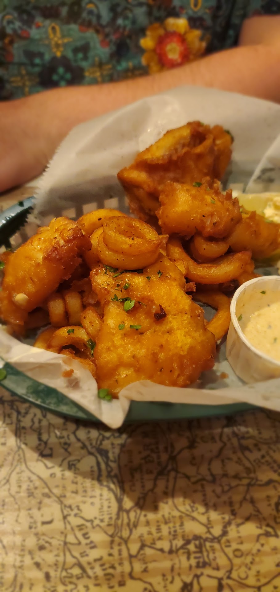 I ordered fish and chips and it came out with curly fries which was not on the menu, and the fish was almost underdone.